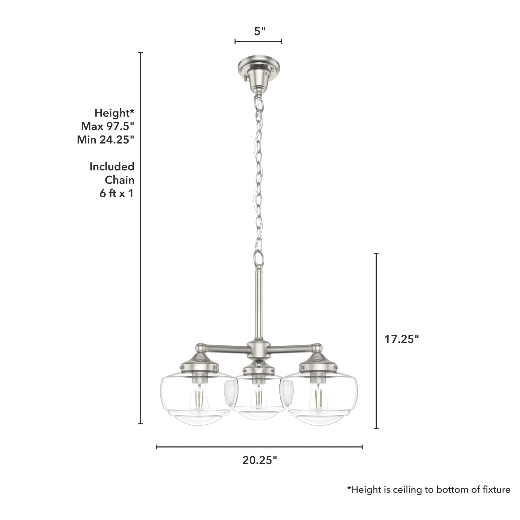 Illuminate your space with the exquisite Hunter Saddle Creek 3-Light LED Chandelier in brushed nickel. This fixture combines transitional design with premium materials, perfect for enhancing kitchens, dining areas, and living rooms with its seeded glass shading and adjustable hanging length.