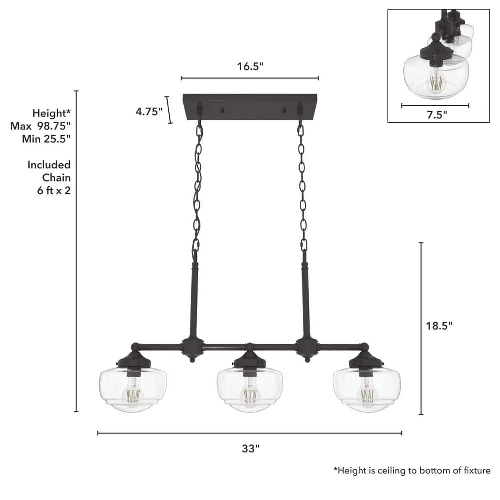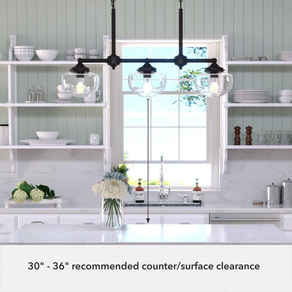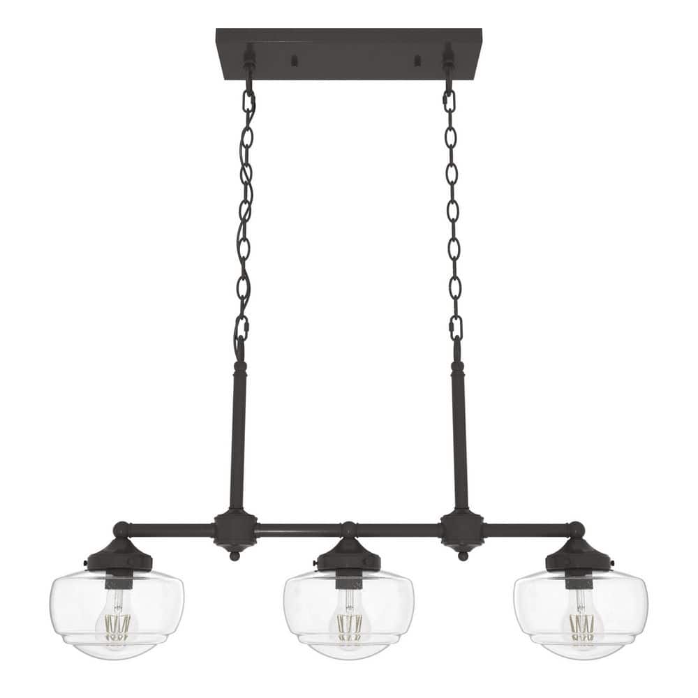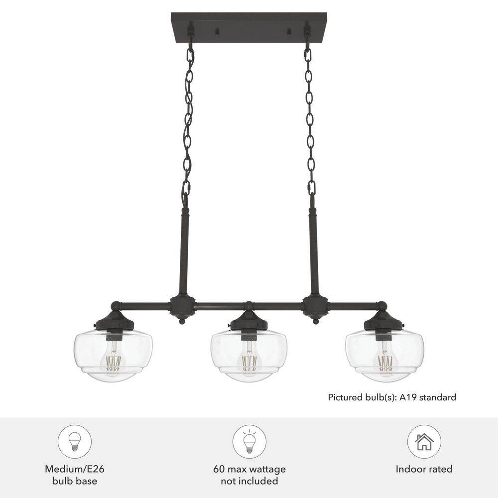 - Transitional Design: Noble bronze finish and clear seeded glass shades complement modern and traditional decors.