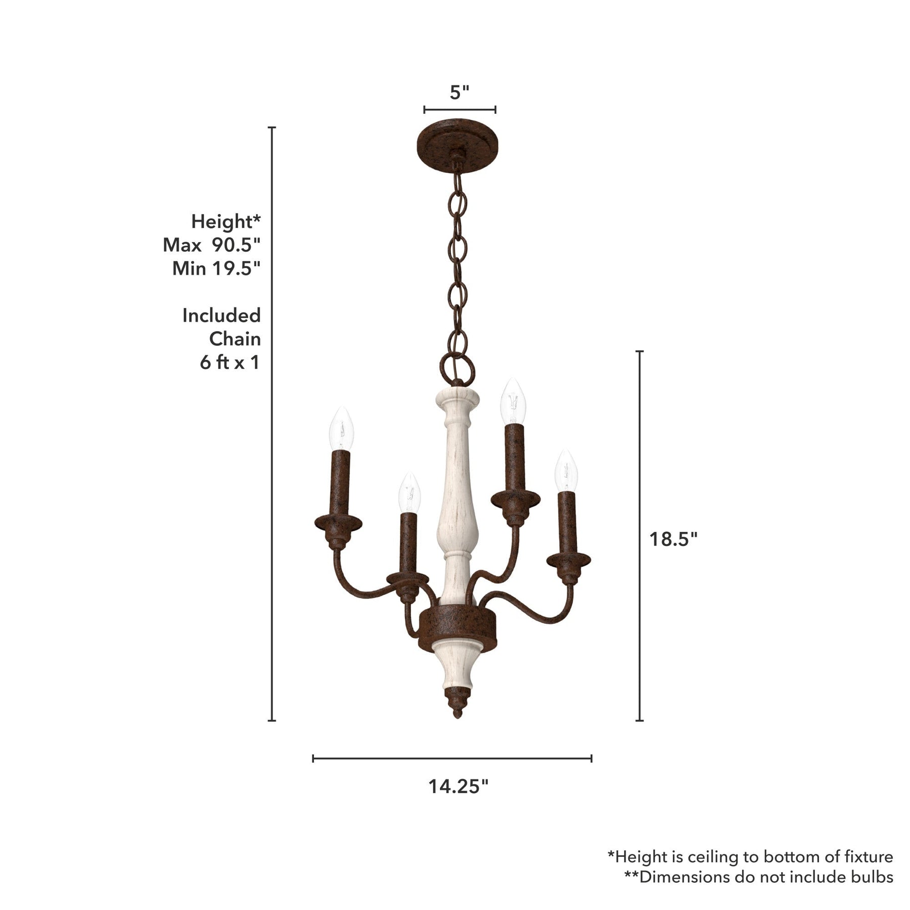 - Adjustable Hanging: Flexible chain offers hanging options from 19.5 to 90.5 inches.
