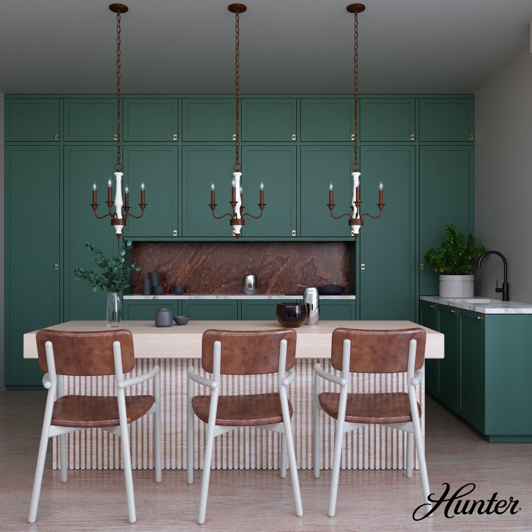 Illuminate your home with the Teren 4-Light Matte White Chandelier from Hunter, a trusted name in lighting since 1886. This elegant fixture blends rustic charm with refined style, featuring a traditional design perfect for enhancing kitchens, living rooms, and dining areas.
