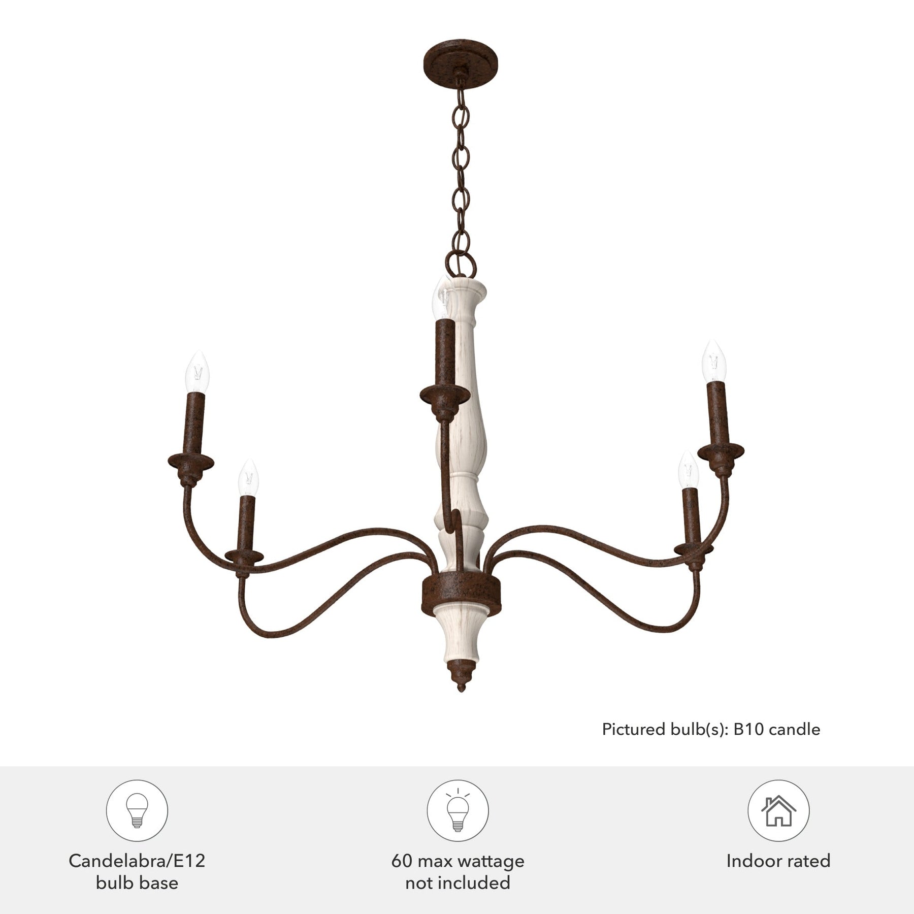 Hunter Teren 6-Light Matte White Traditional Led Bare Bulb Chandelier