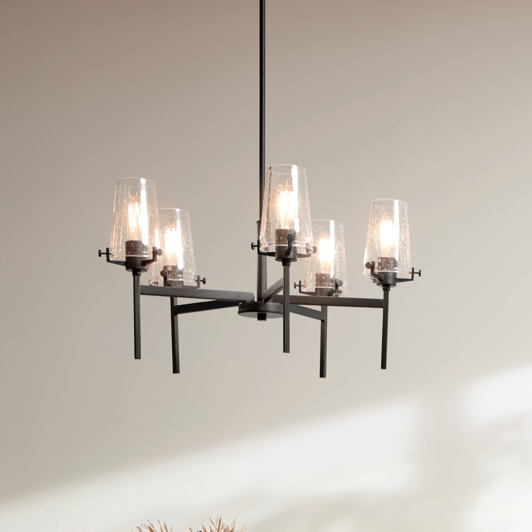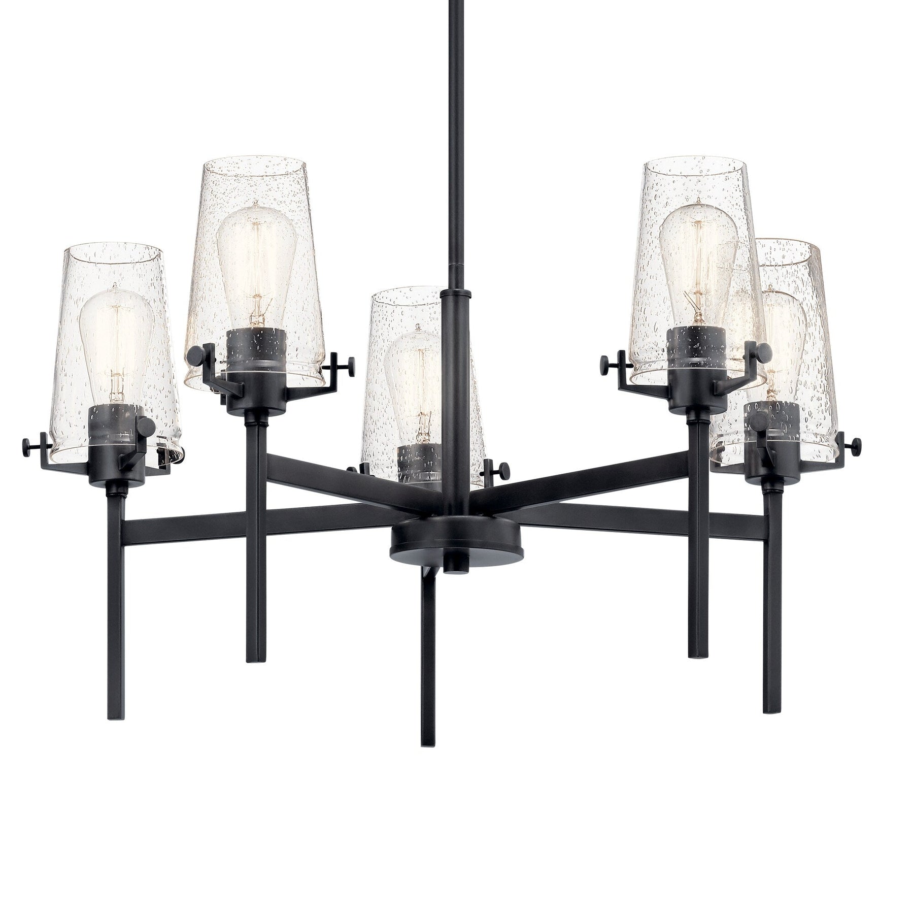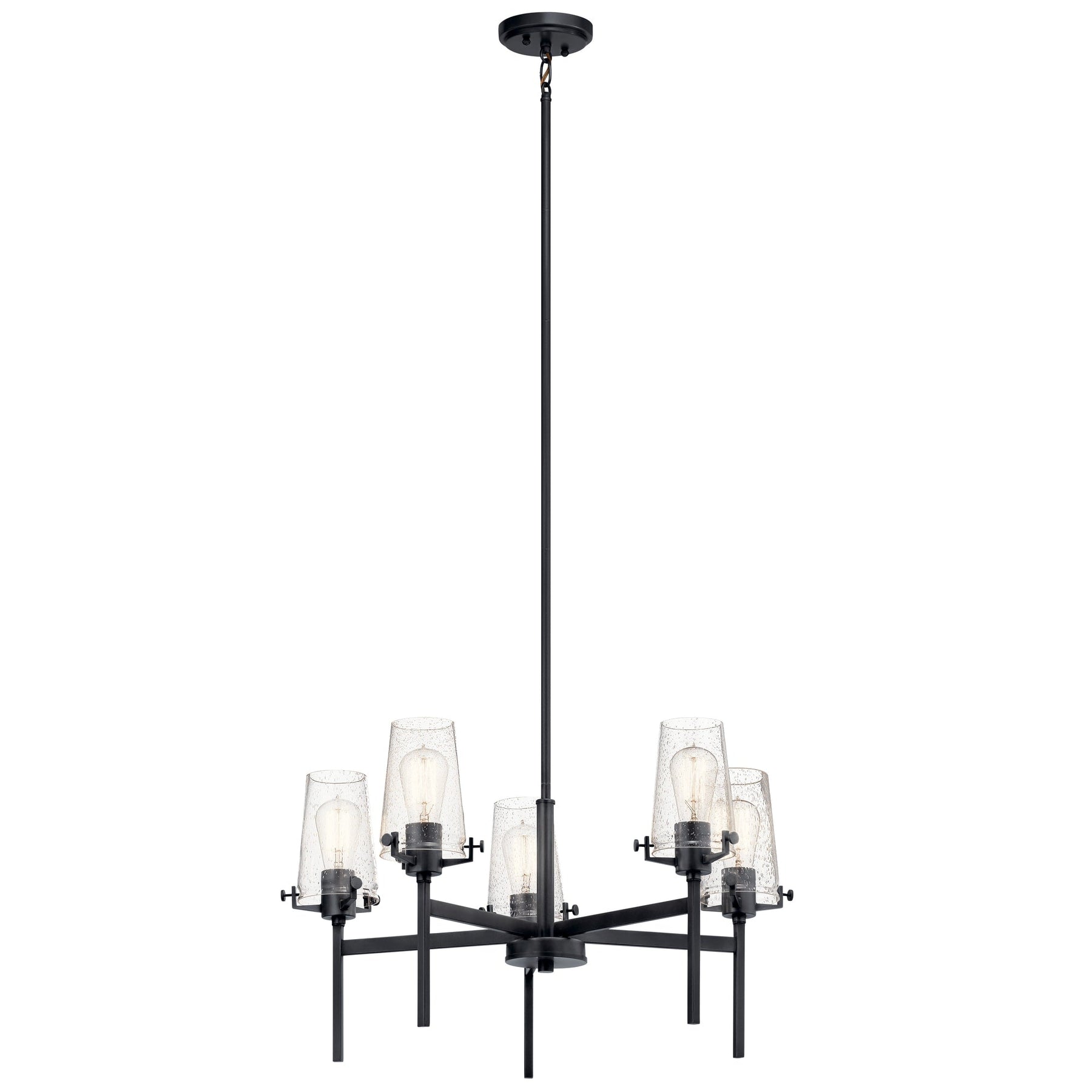 Illuminate your space with the Kichler Alton 5-Light Chandelier, a stunning blend of elegance and industrial charm. Part of the iconic Alton Collection, this chandelier features luxe industrial detailing with clear seeded glass shades that highlight your bulbs. Ideal for adding ambient light to any living area, it pairs beautifully with modern or vintage décor elements.
