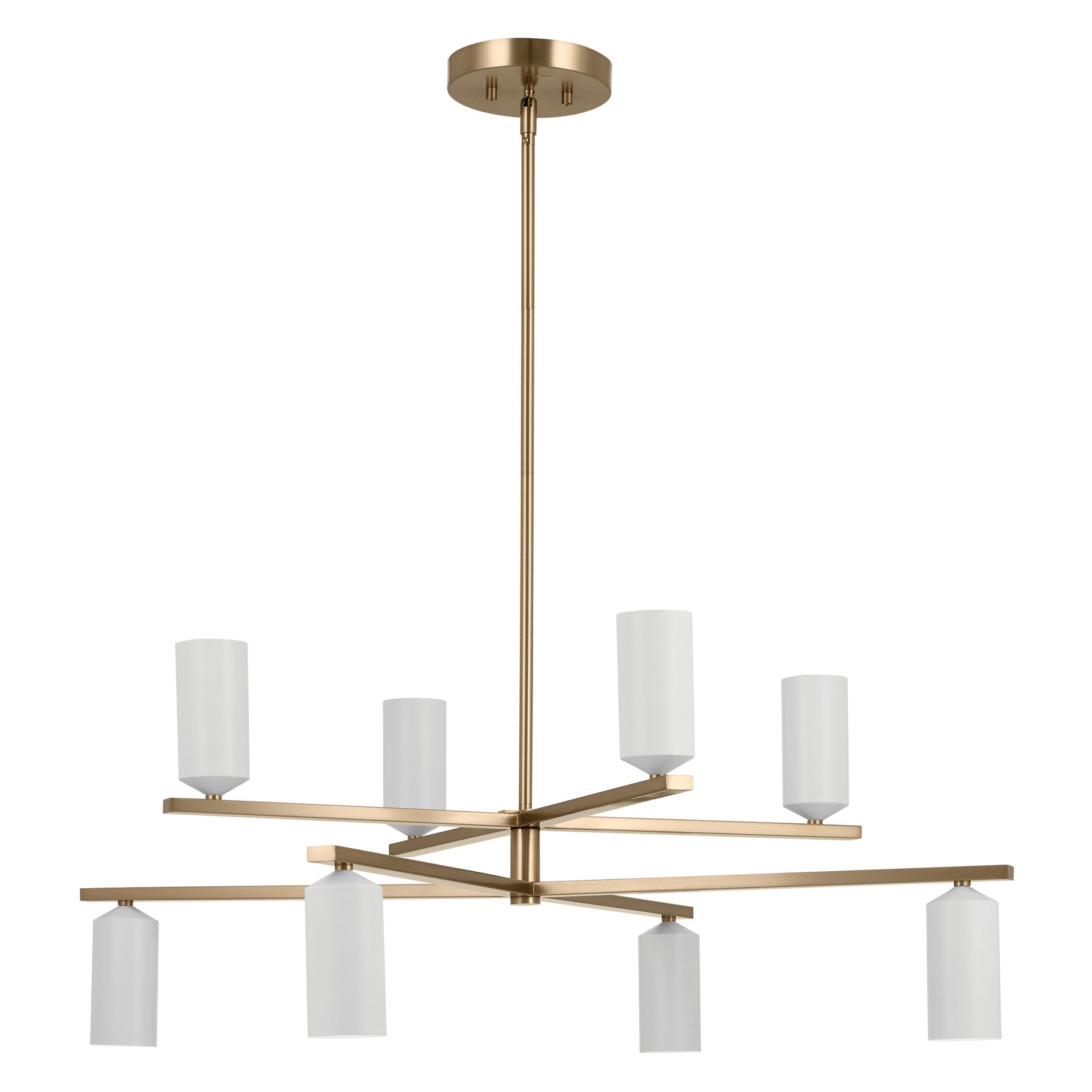Illuminate your space with the Kichler Gala 8-Light Gold LED Chandelier, a modern masterpiece that combines elegance and functionality. Crafted from durable steel with a sophisticated champagne bronze finish, this chandelier pairs perfectly with white shades to create a timeless feel in any contemporary setting.
