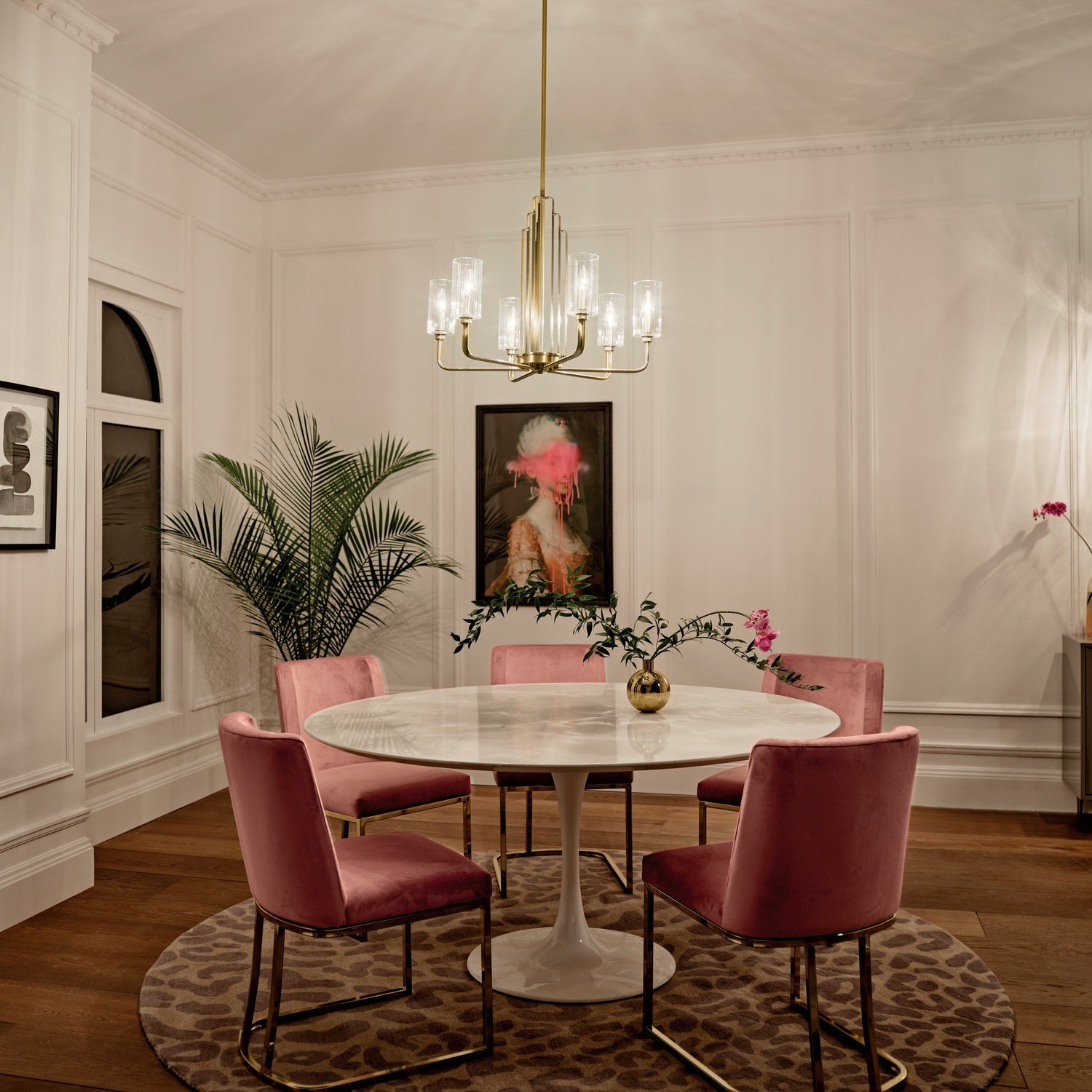 Illuminate your home with the captivating Kimrose Chandelier and bring a touch of Art Deco elegance to your living space today.