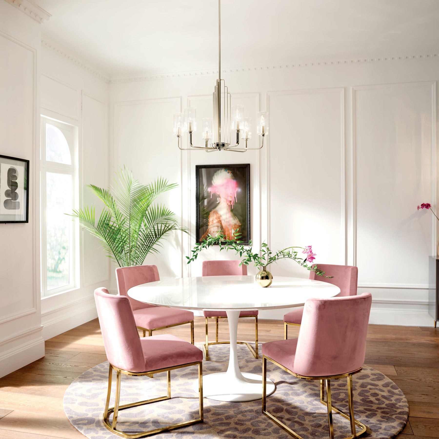 Transform your space with the Kimrose Chandelier, an evocative tribute to Art Deco's opulent charm. Its bold geometric shapes and stunning polished nickel finish sculpt a captivating centerpiece for any interior. Experiment with placement over a lavish dining table or as a grand welcome in your foyer. Envision this piece as the pinnacle of luxurious living, where art meets illumination.