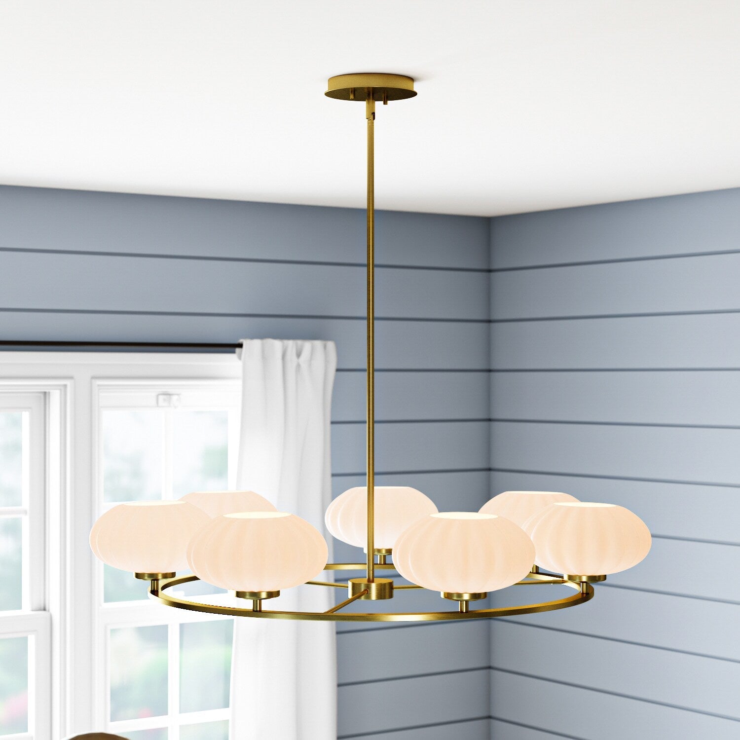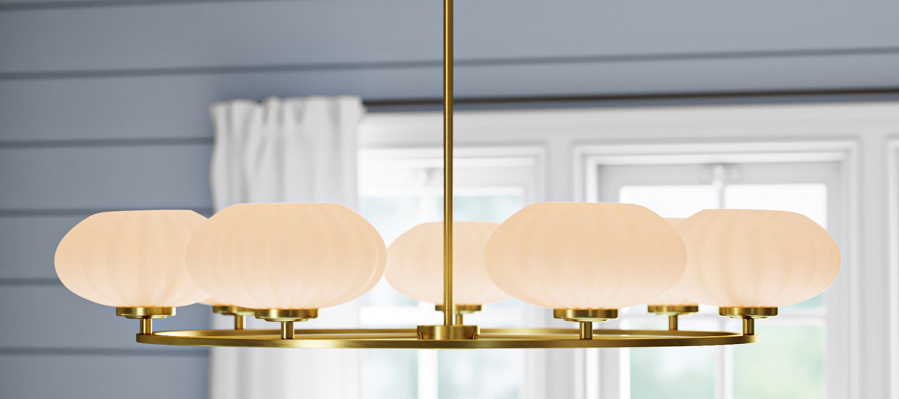 • Distinctive Design: Features a mid-century modern look with satin etched cased opal glass and a luxurious fox gold finish.