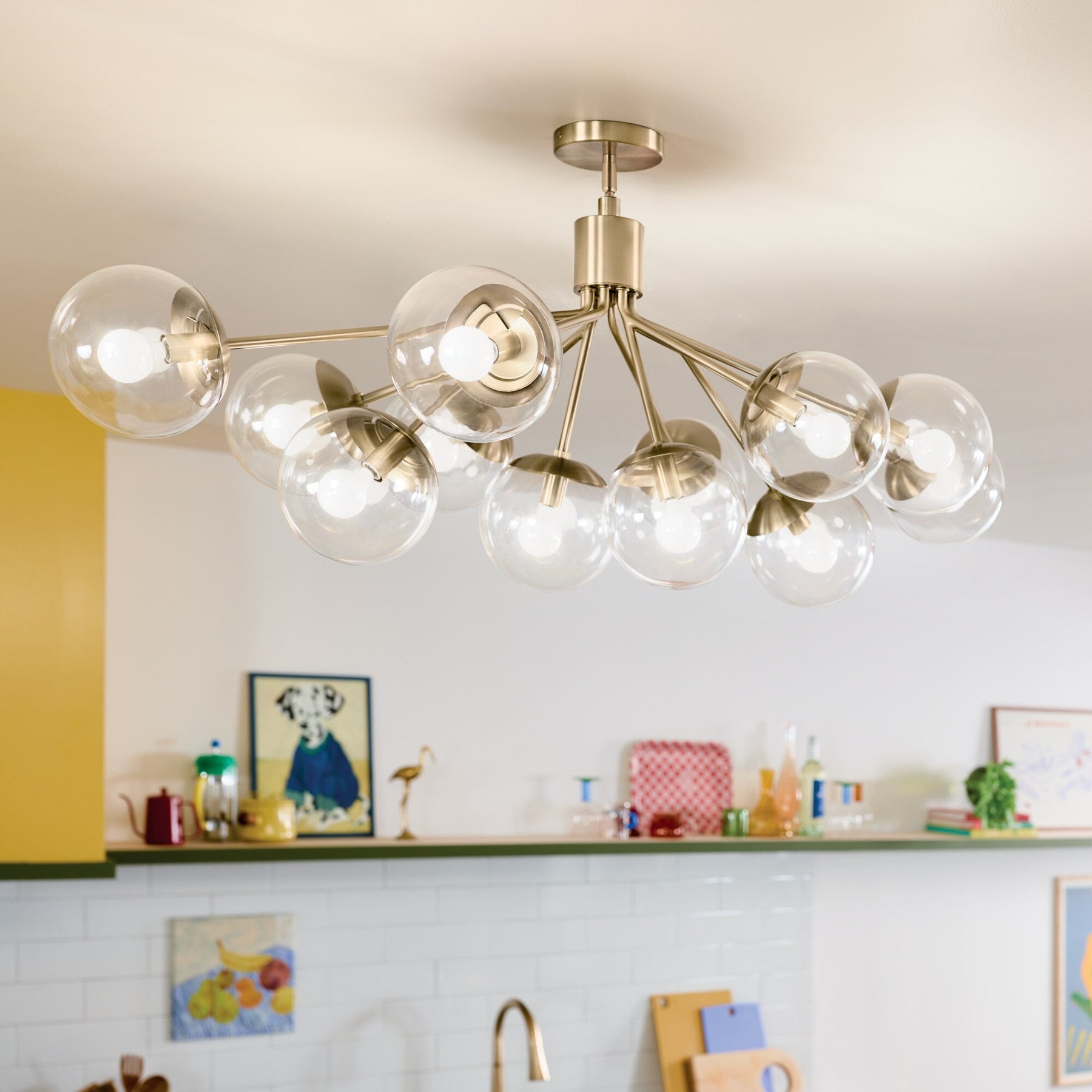 The Kichler Silvarious 12-Light Chandelier is a stunning centerpiece that embodies contemporary elegance. With its sputnik-inspired design and a luxurious champagne bronze finish, this chandelier creates a dazzling display of light in any room. Perfect for dining rooms and living spaces, it offers radiant illumination and a touch of modern sophistication.