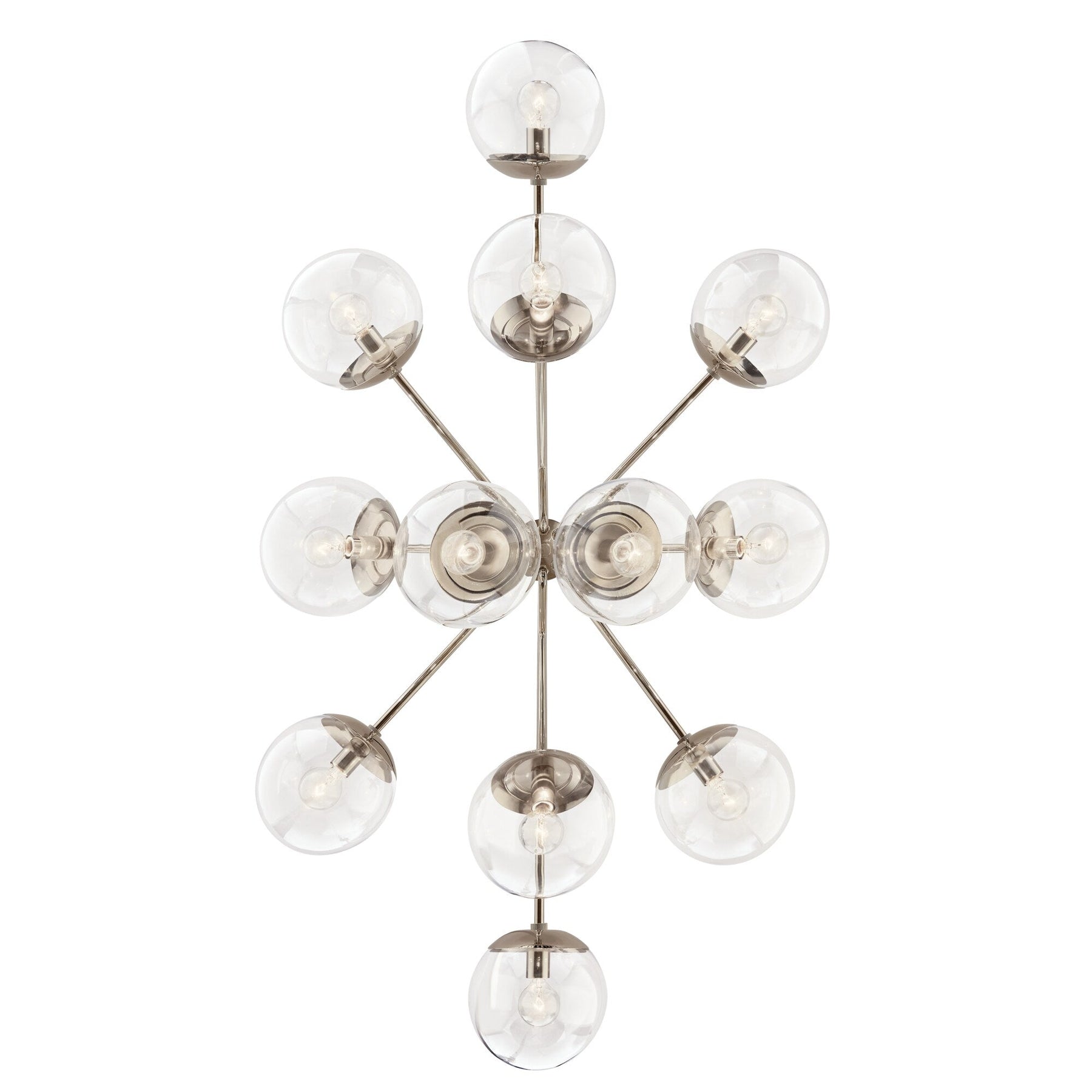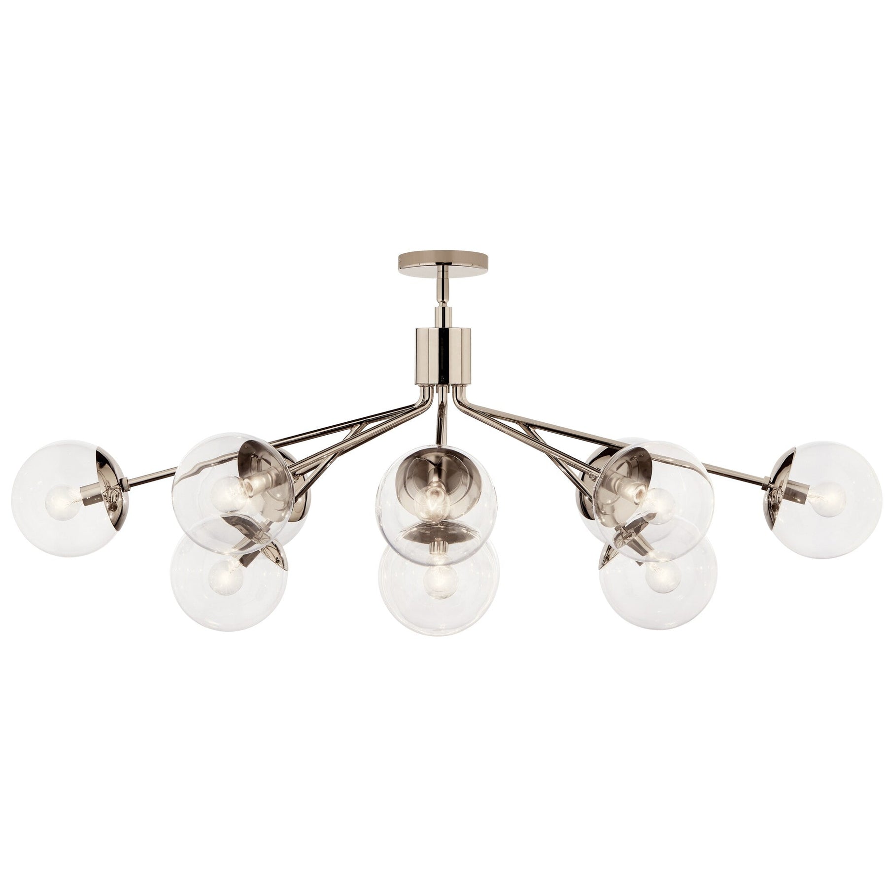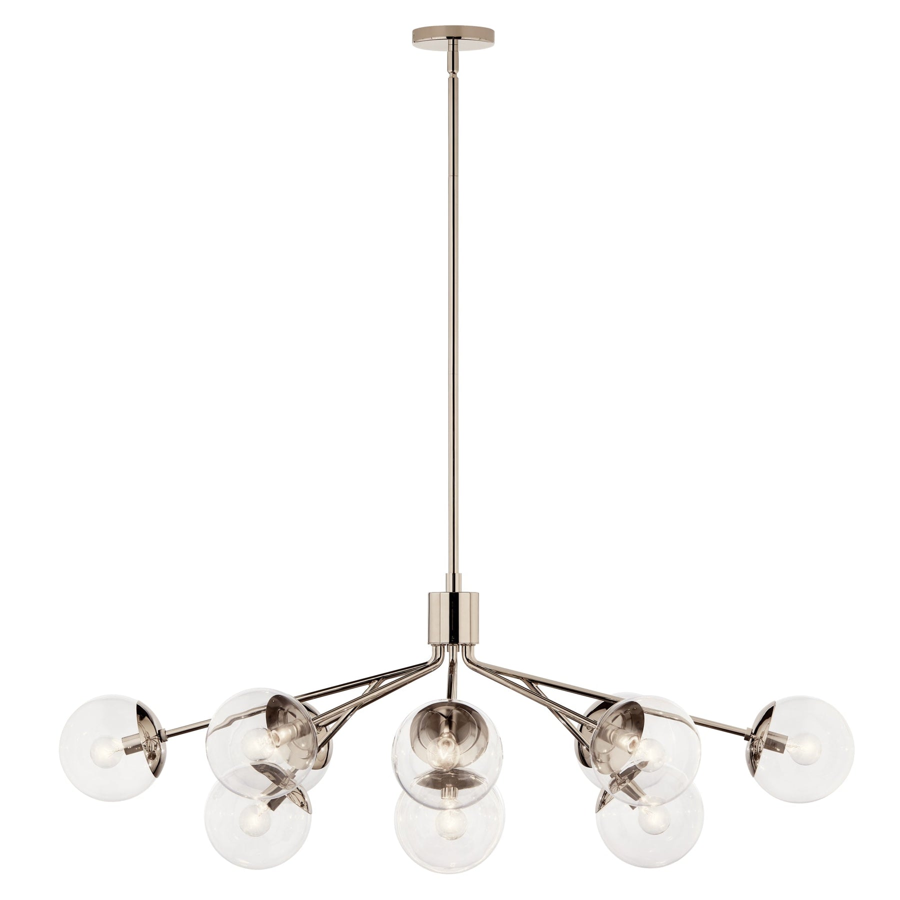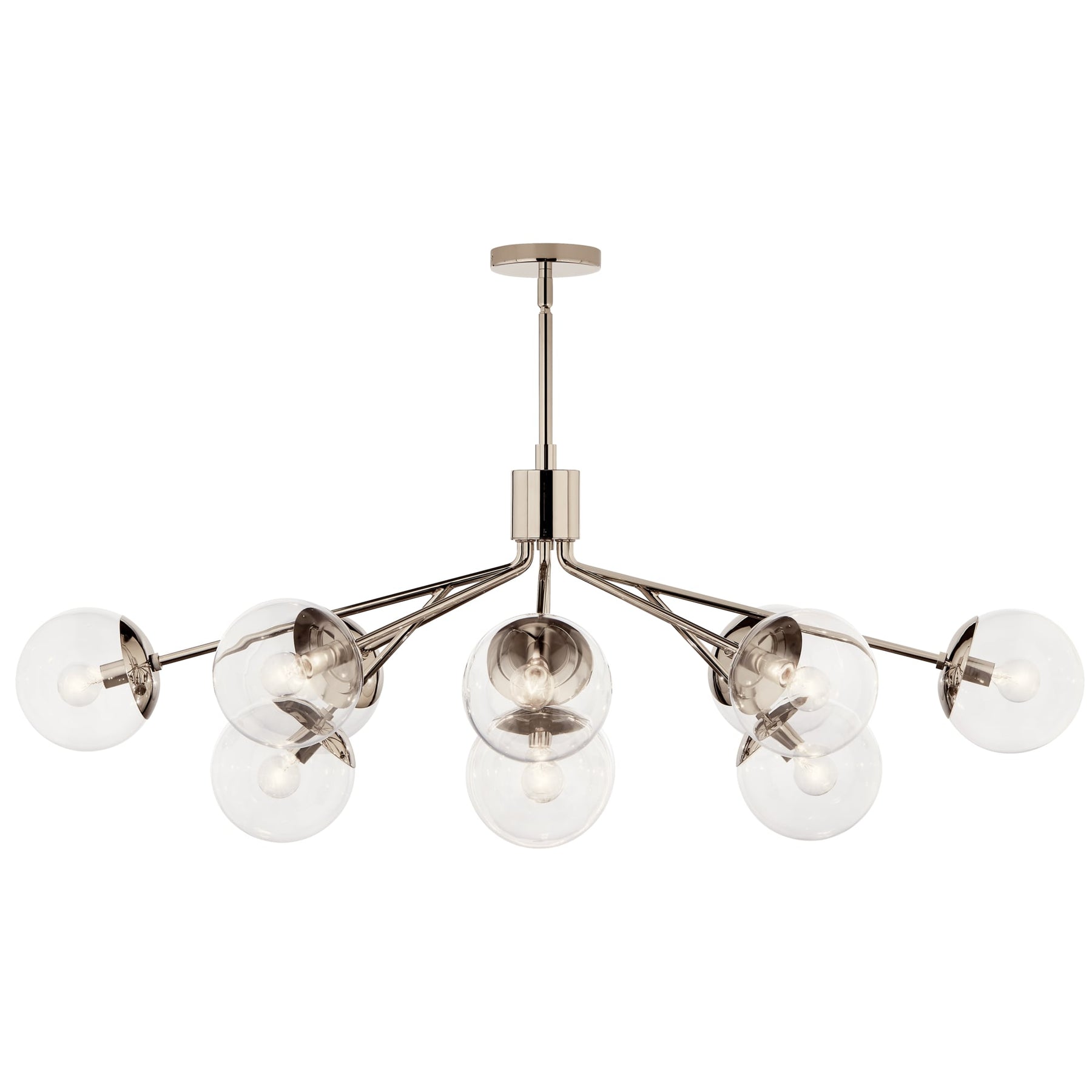 The Kichler Silvarious 12-Light Chandelier is a captivating centerpiece that embodies modern elegance with its sputnik-inspired design and polished nickel finish. Clear glass shades enhance its illumination, making it a stunning addition to any contemporary living or dining space.