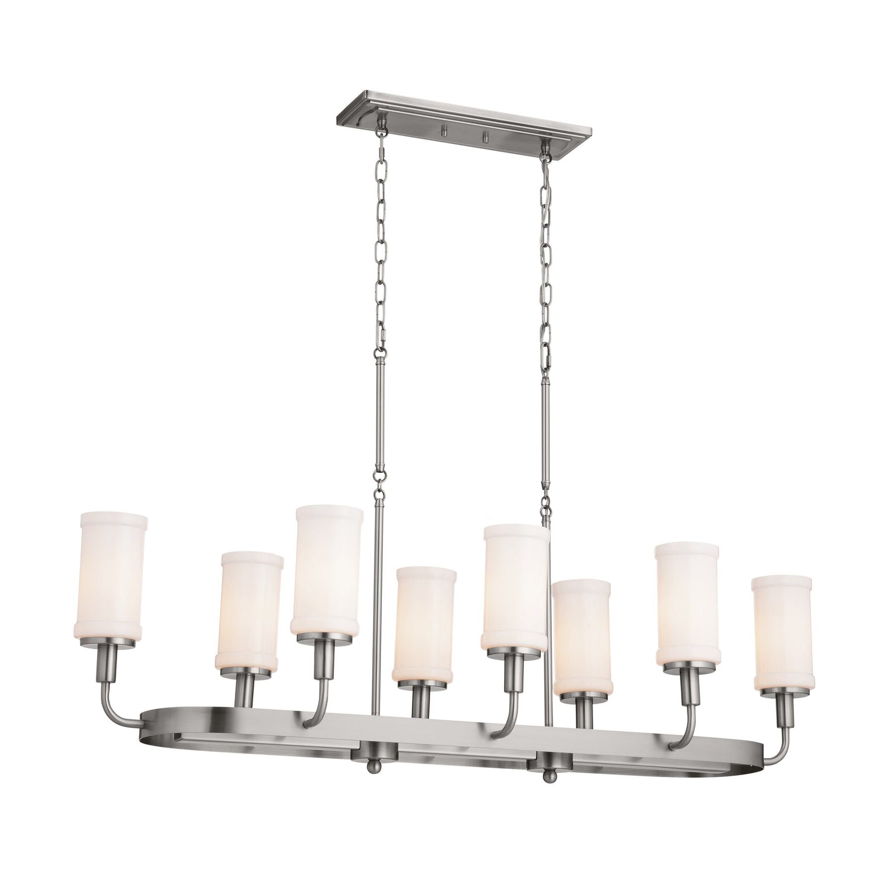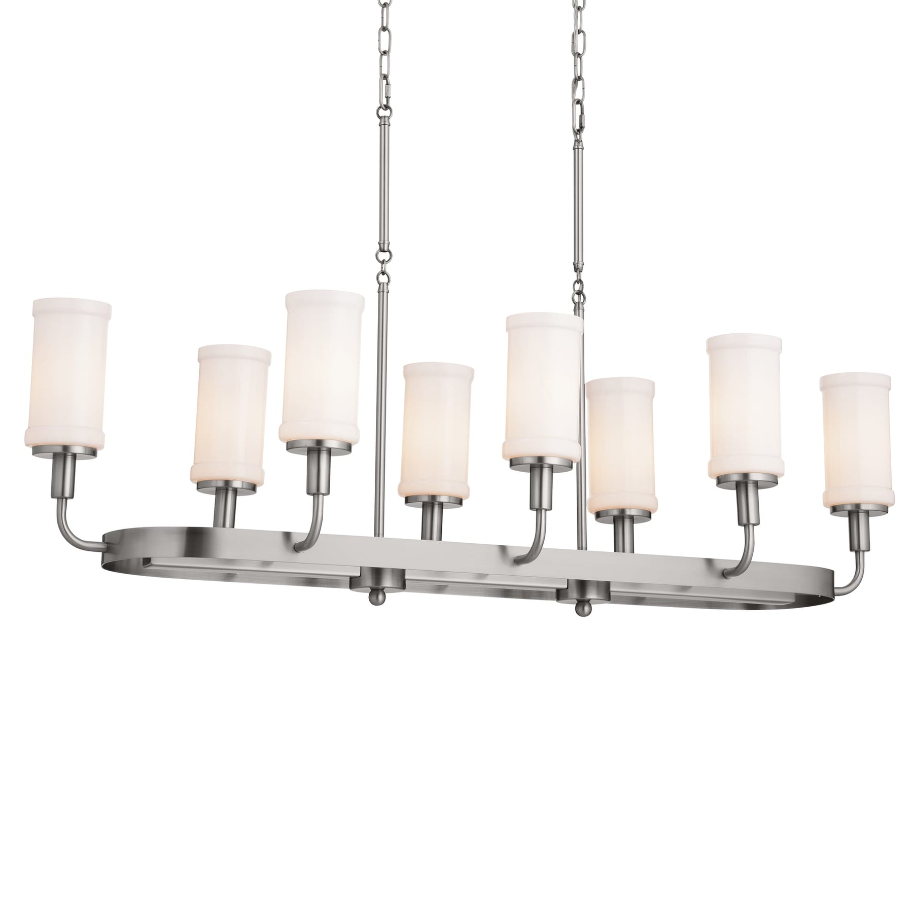 The Kichler Vetivene 8-Light Pewter Farmhouse Chandelier masterfully combines vintage allure with contemporary versatility. Its Classic Pewter finish and optional Opal Glass shades offer a nostalgic touch, ideal for illuminating dining areas, kitchens, or living rooms. Perfectly adjustable for any ceiling height, it is engineered to illuminate any space with grace.