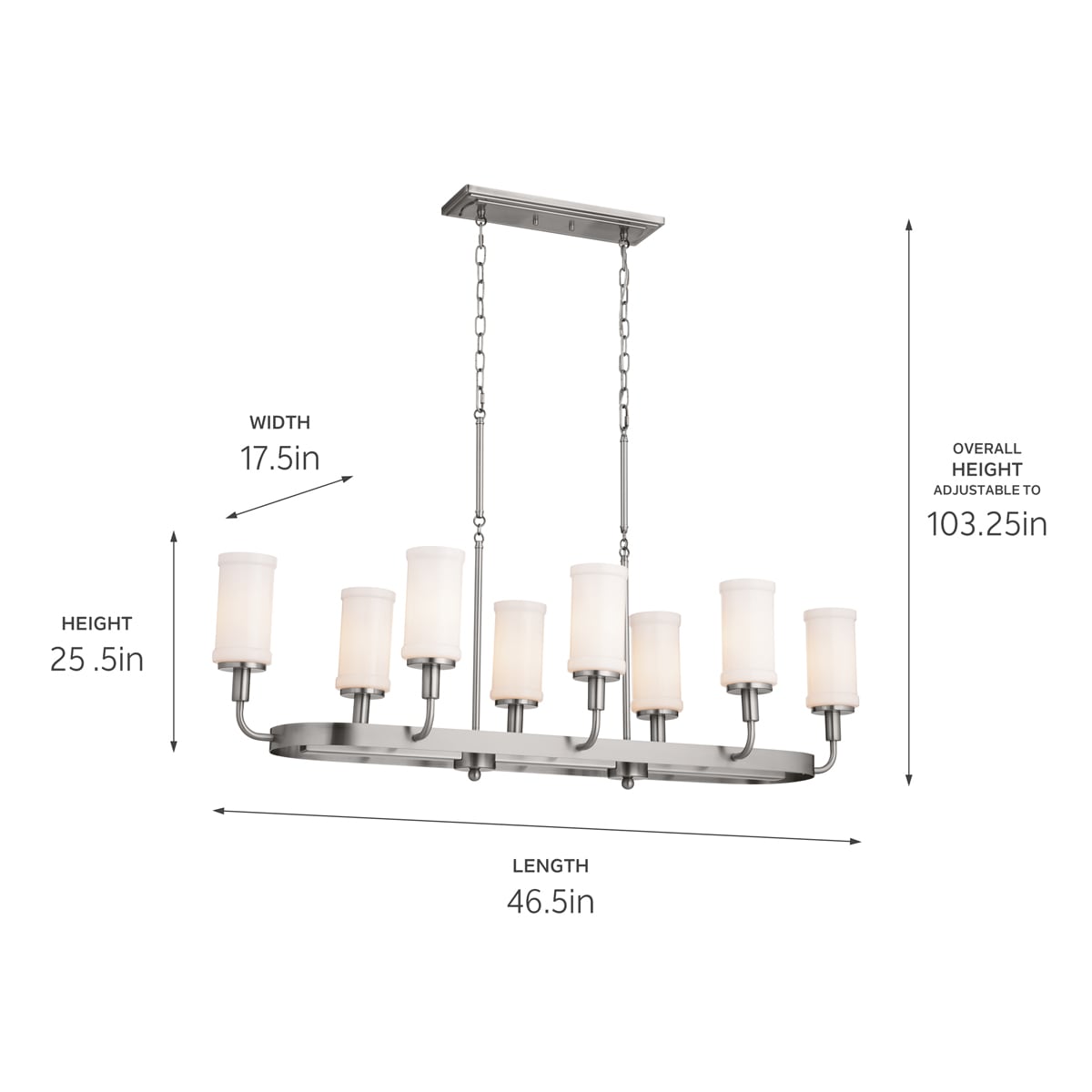 • Ambient Lighting: Eight candelabra bulbs create the foundation of atmosphere every radiant space deserves, compatible with or without glass shades.