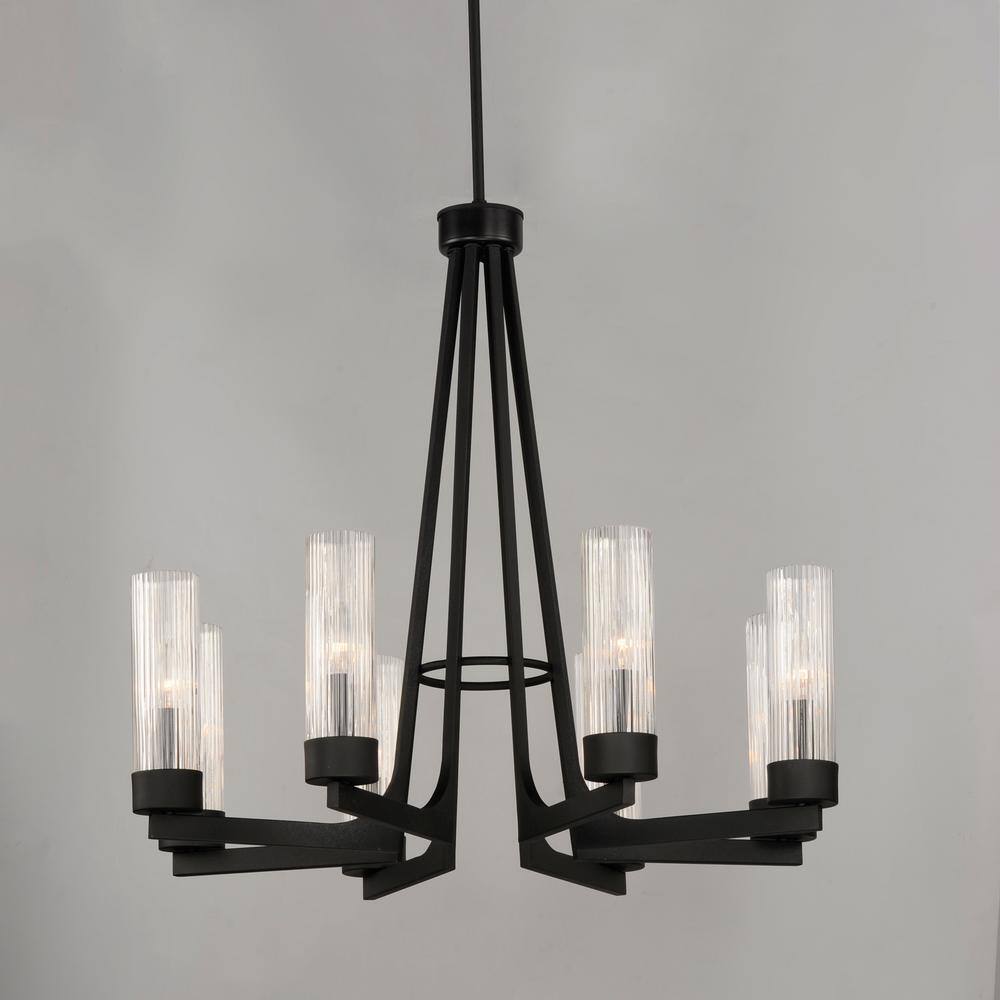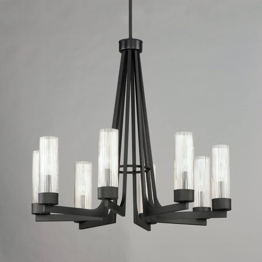 Elevate your space with the Delos 8-Light Gray Chandelier by Maxim Lighting. This stunning fixture combines timeless elegance with modern design, featuring a sleek anthracite finish and fluted glass shades that softly diffuse light for a captivating ambiance. Ideal for creating a focal point in dining rooms, foyers, or living areas, this chandelier is both functional and fashionable.