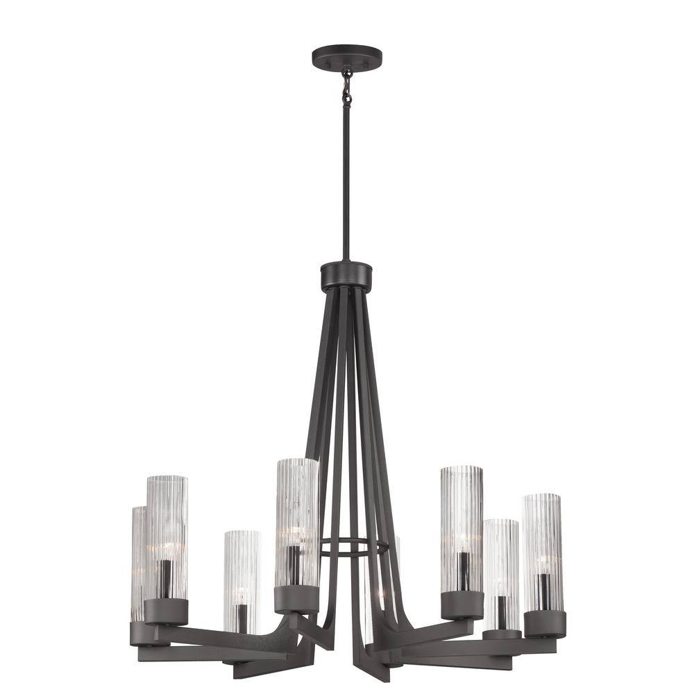 The Delos 8-Light Gray Chandelier deftly melds classic allure with contemporary sensibilities, setting the stage for a captivating ambiance in any room. Its anthracite finish adds a touch of refined sophistication, while the fluted glass shades evoke the warm nostalgia of candlelight. Hang this chandelier over an elegantly set dining table or in a spacious foyer to enchant guests with its timeless charm. A transformative piece that elevates everyday environments into realms of luxury.