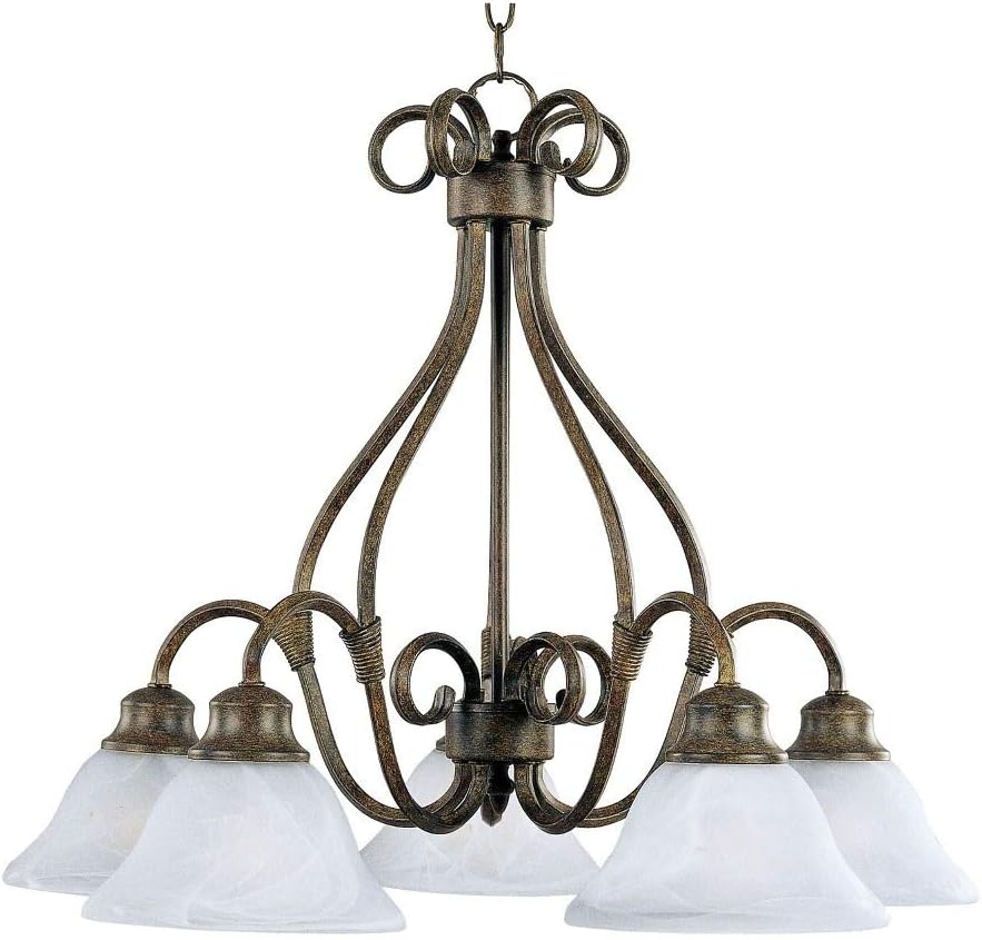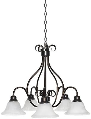 A transitional 5-light chandelier from Maxim Lighting’s Pacific collection, finished in Kentucky Bronze with marble glass shades. Hardwired downlight design delivers warm, dimmable illumination ideal for dining rooms and living spaces.