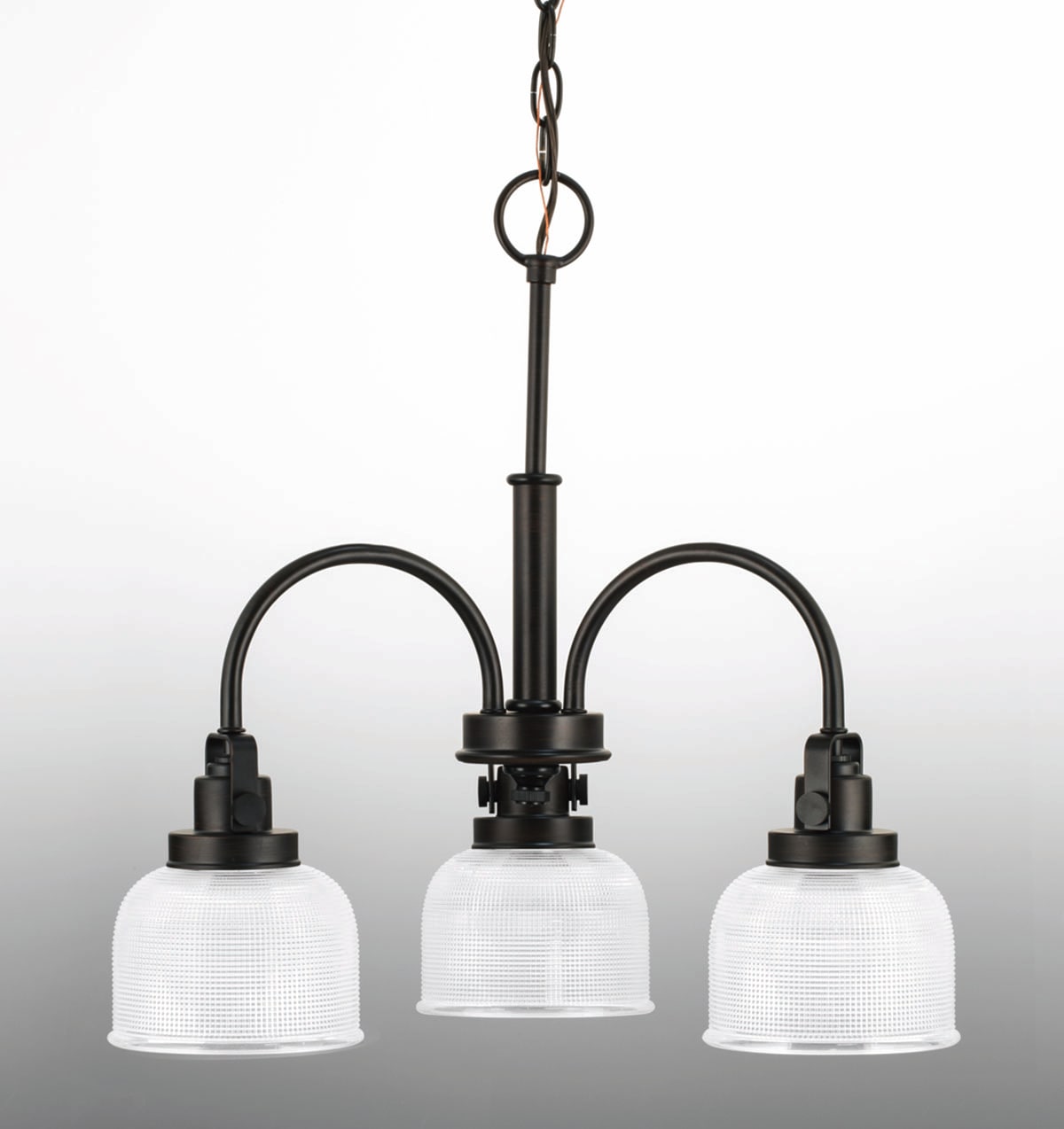 The Progress Lighting Archie 3-Light Bronze Chandelier beautifully marries vintage industrial charm with transitional style design. Its standout Venetian bronze finish complements the clear prismatic glass shades, making it a versatile addition to any room. Ideal for adding a warm, dimmable ambiance, this chandelier is both stylish and functional.