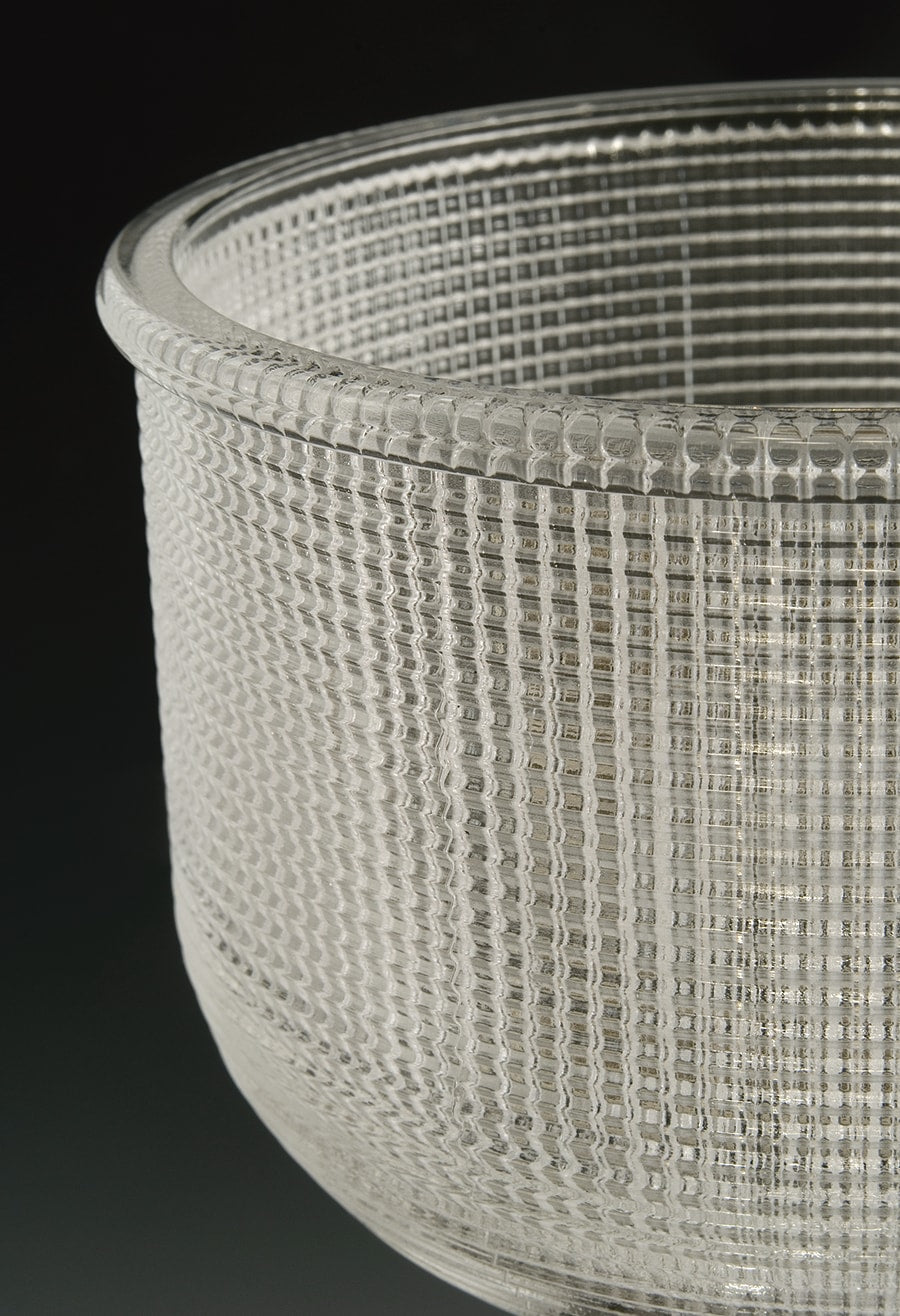 A: The Archie chandelier features clear prismatic glass shades which provide a distinctive and timeless look.