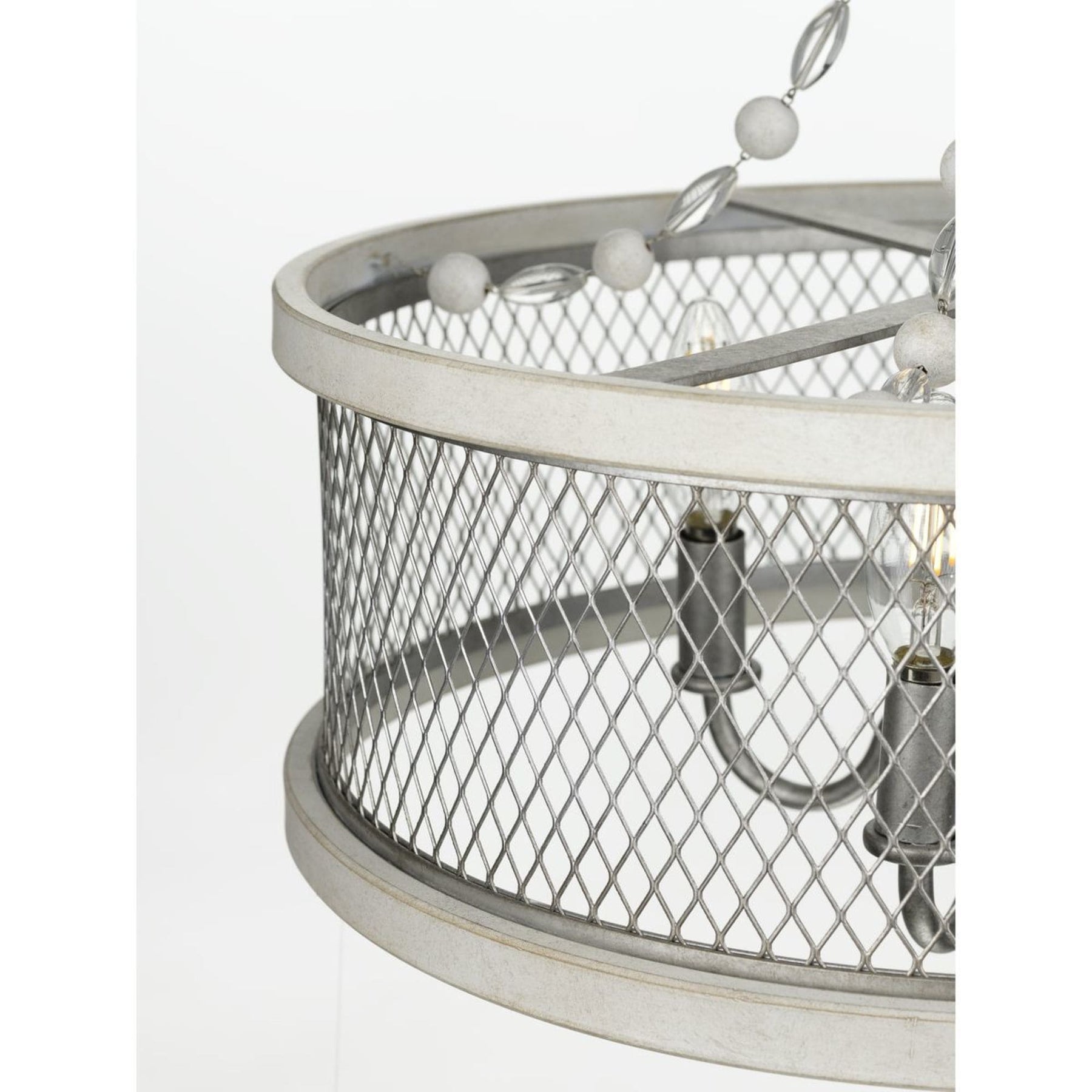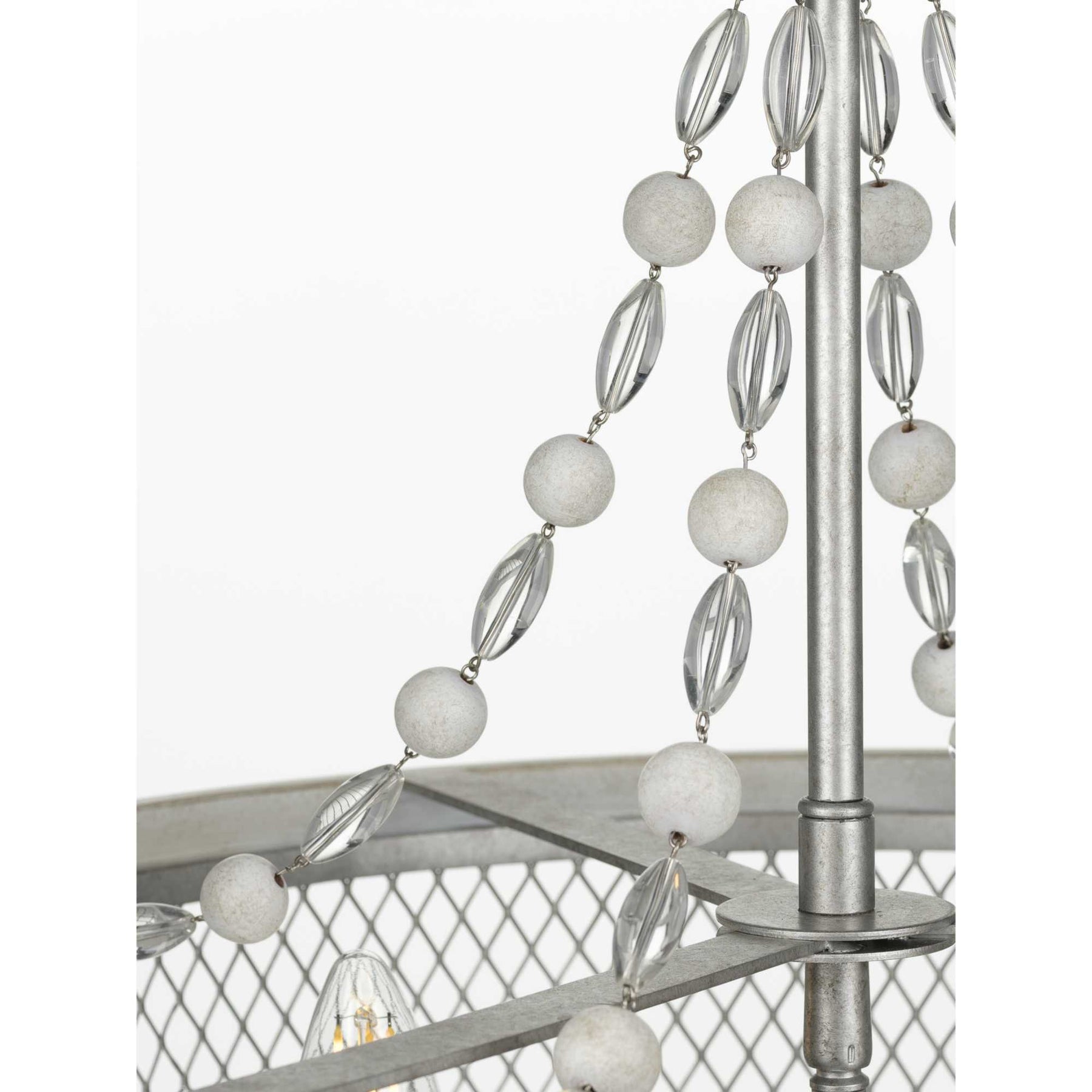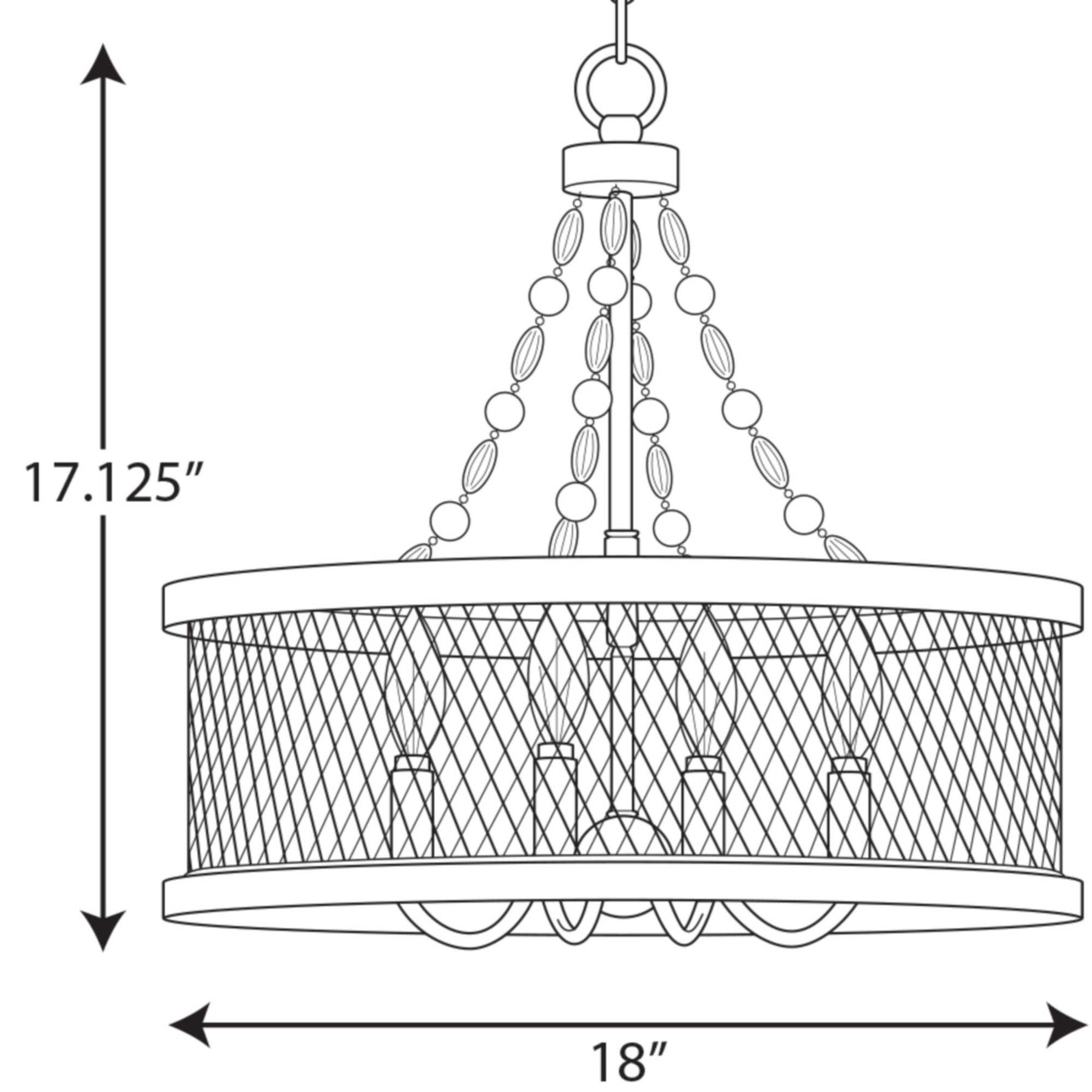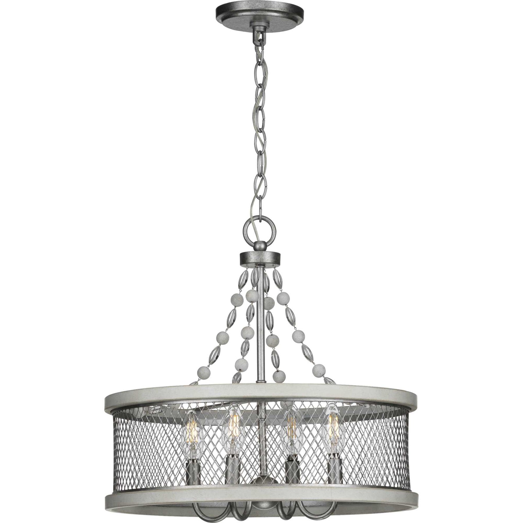 Illuminate your space with the Austelle 4-Light Farmhouse Chandelier, a stunning lighting fixture from Progress Lighting. This chandelier features a galvanized finish with a captivating mesh shade, adorned with decorative wooden beads. Perfect for infusing any farmhouse or rustic styled room with warmth and elegance.