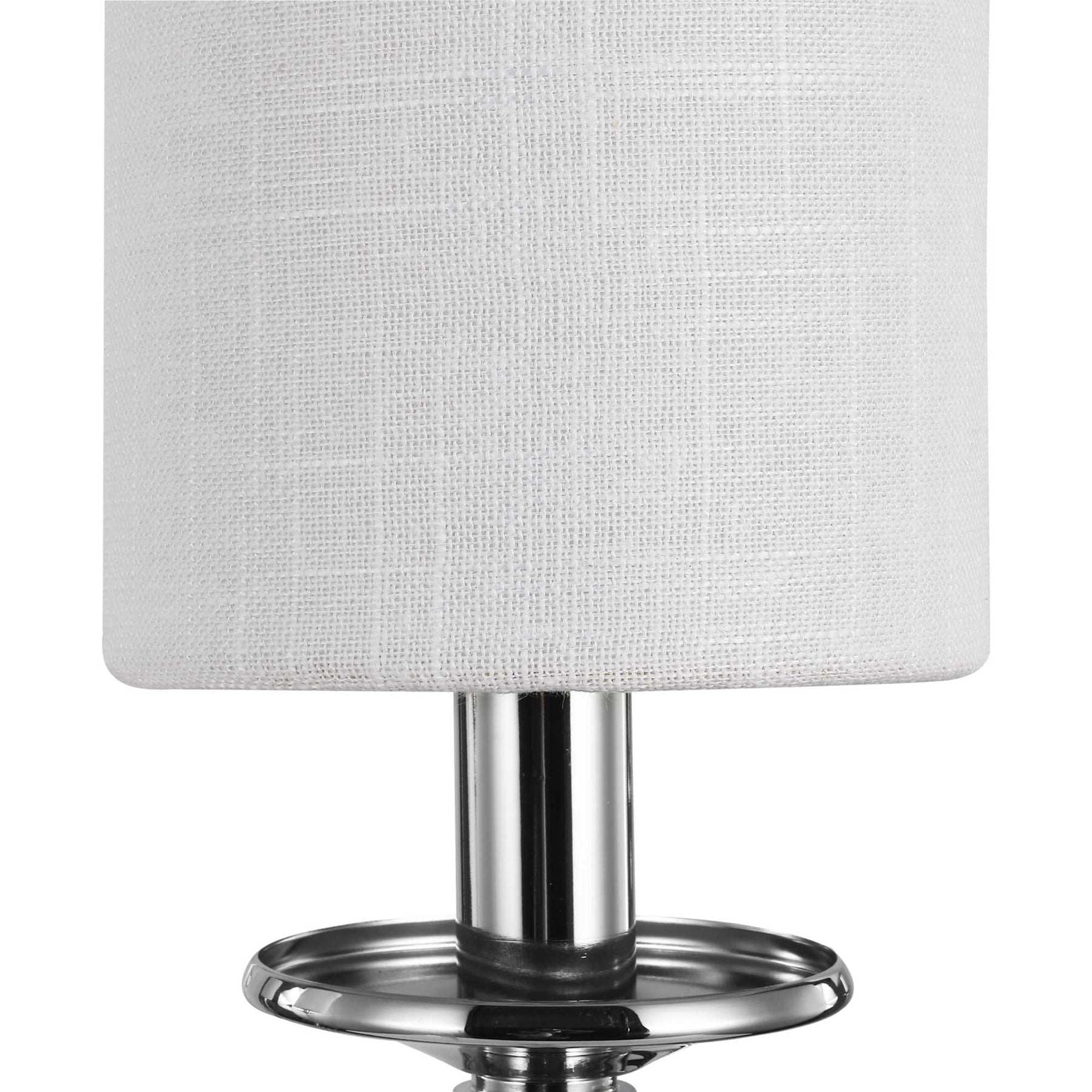 • Elegant Design: Features a polished chrome finish with crisp white linen shades.