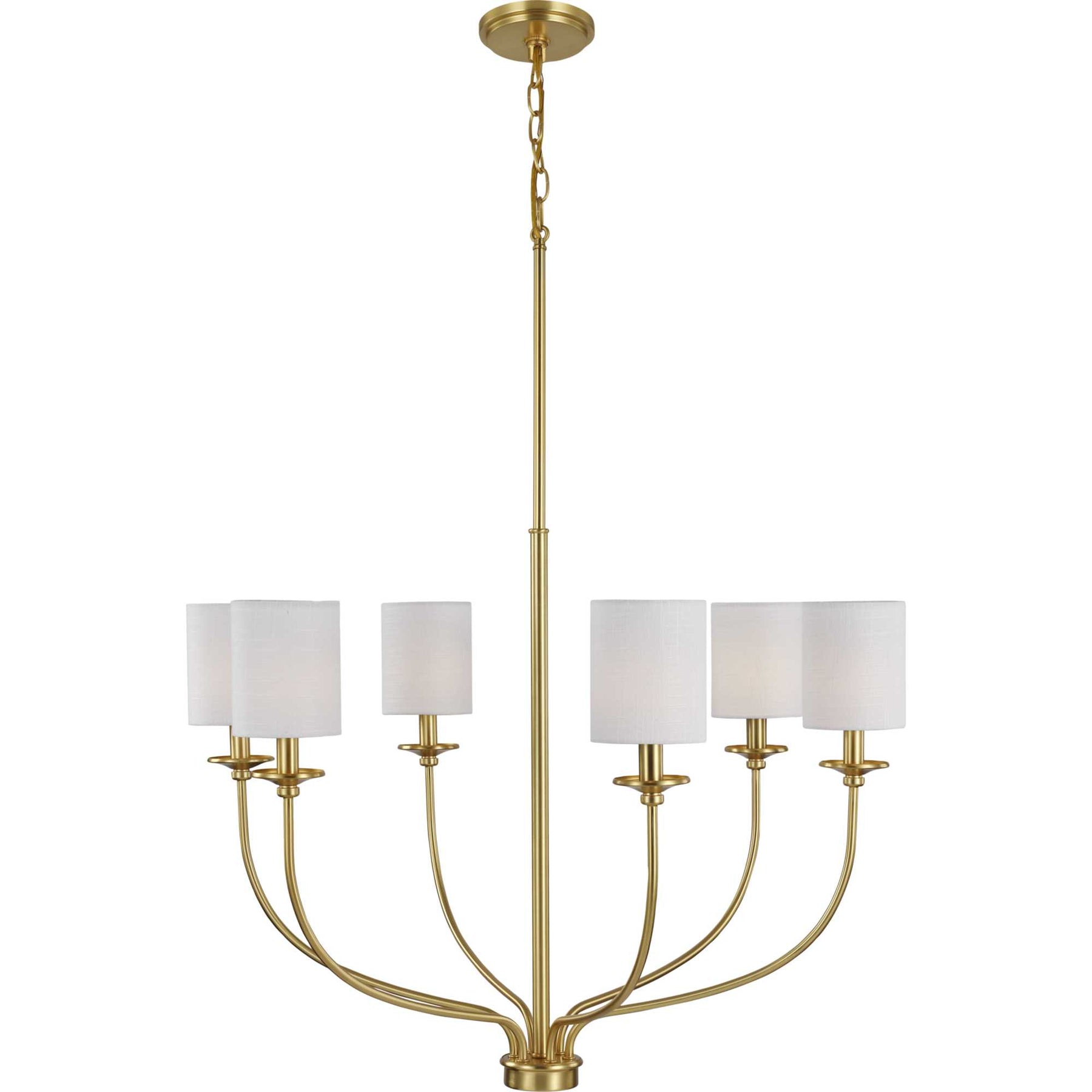 Elevate your space with the Bonita 6-Light Satin Brass Chandelier by Progress Lighting. Perfect for transitional or traditional interiors, it combines luxurious satin brass finish with crisp white linen shades for an elegant, timeless look. Customizable hanging options and sleek design make it ideal for dining rooms, kitchens, and foyers.