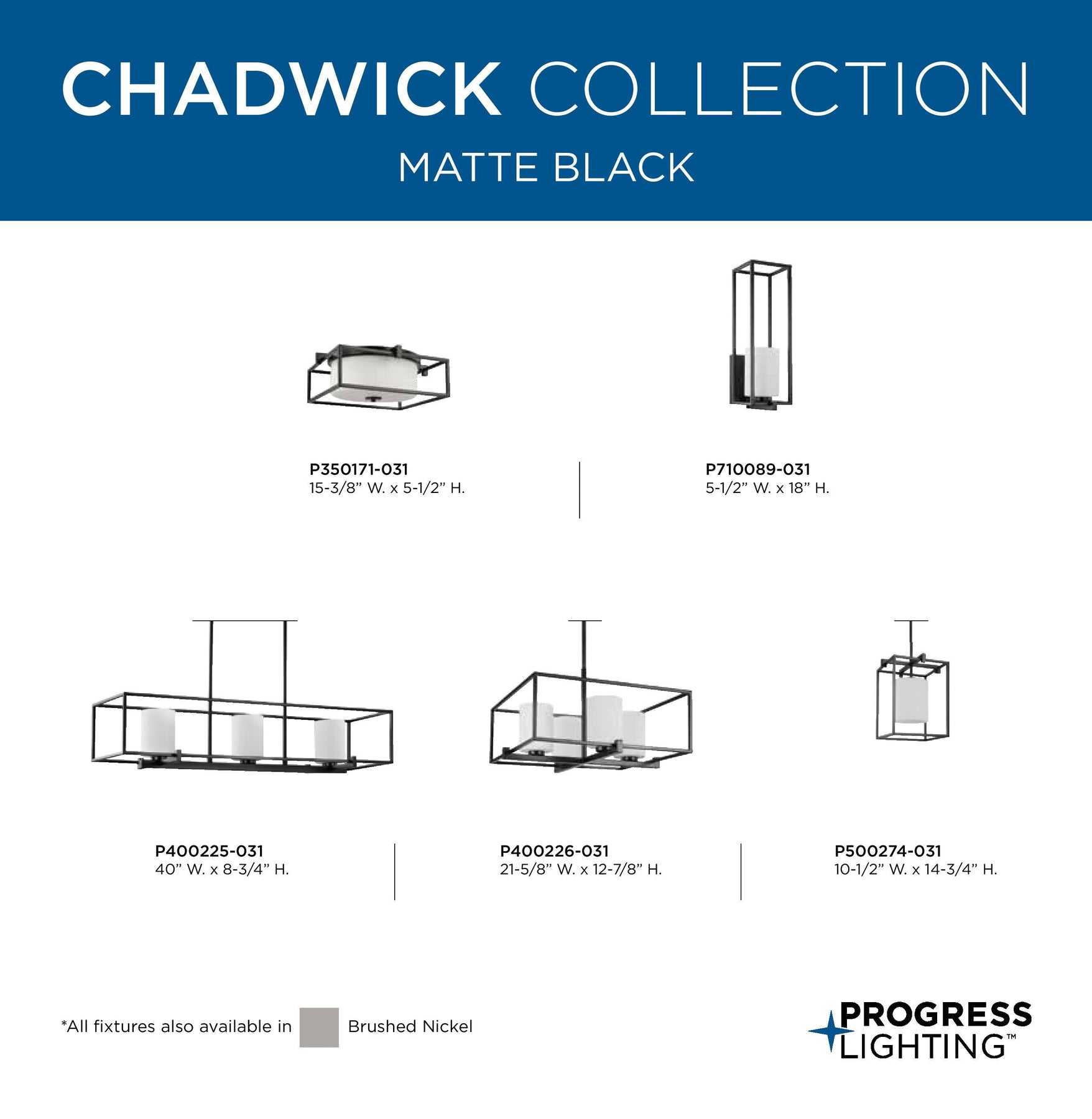 Elevate your space with the Chadwick 4-Light Chandelier by Progress Lighting. This elegant fixture features a sleek matte black finish and etched opal glass shades, making it perfect for modern and contemporary settings. With adjustable stems, it adapts to various ceiling heights, allowing you to tailor its style to your dining room, kitchen, or foyer.