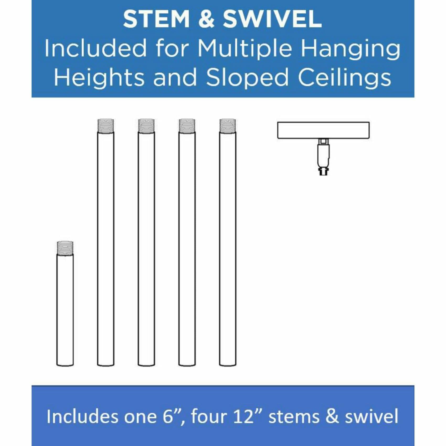• Adaptable Design: Includes one 6-inch and four 12-inch stems for different ceiling heights.