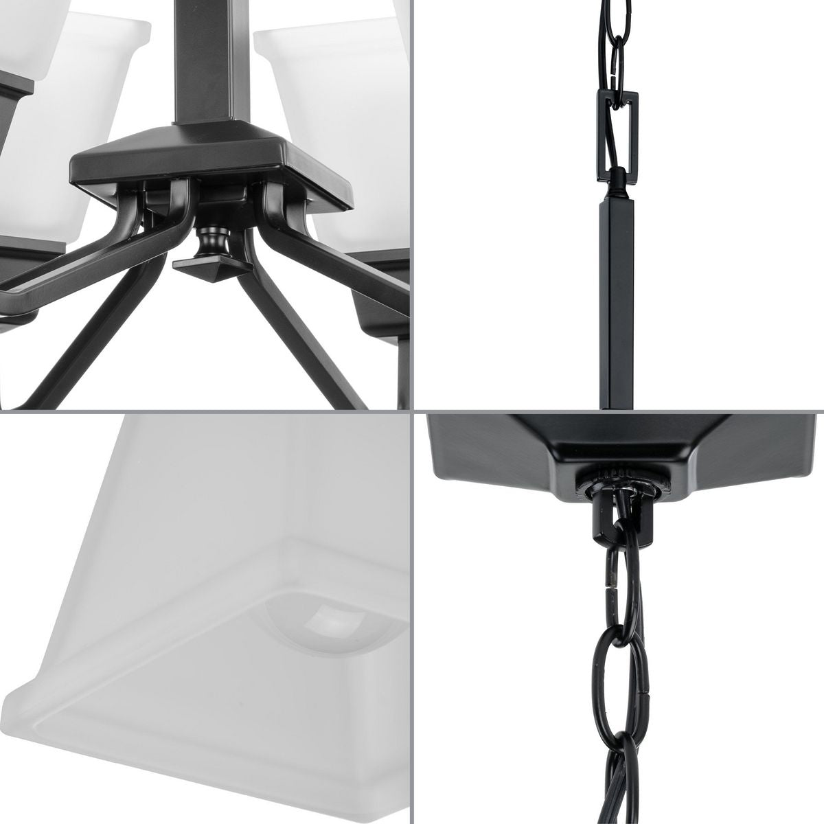 Illuminate your space with the timeless elegance of the Clifton Heights 6-Light Matte Black Farmhouse Chandelier. This sophisticated fixture features chiseled, craftsman-inspired detailing and luxurious etched glass shades that disperse light evenly for a welcoming ambiance. Perfect for complementing craftsman, farmhouse, or modern interiors with its classic matte black finish.