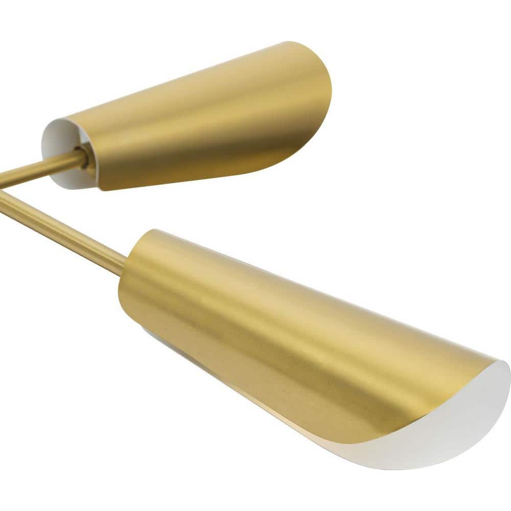 The Cornett 6-Light Brushed Gold Chandelier by Progress Lighting showcases a stunning mid-century modern design, perfect for adding a stylish flair to dining rooms, bedrooms, and great rooms. With its dynamic angles and adjustable arms, this chandelier delivers both form and functionality, offering focused, downward lighting for any modern space.