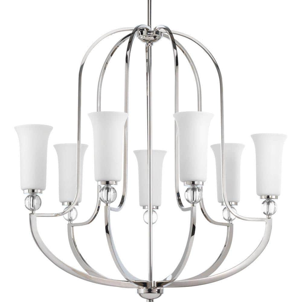 Progress Lighting Elina Collection 7-Light Polished Nickel Chandelier with Opal Glass