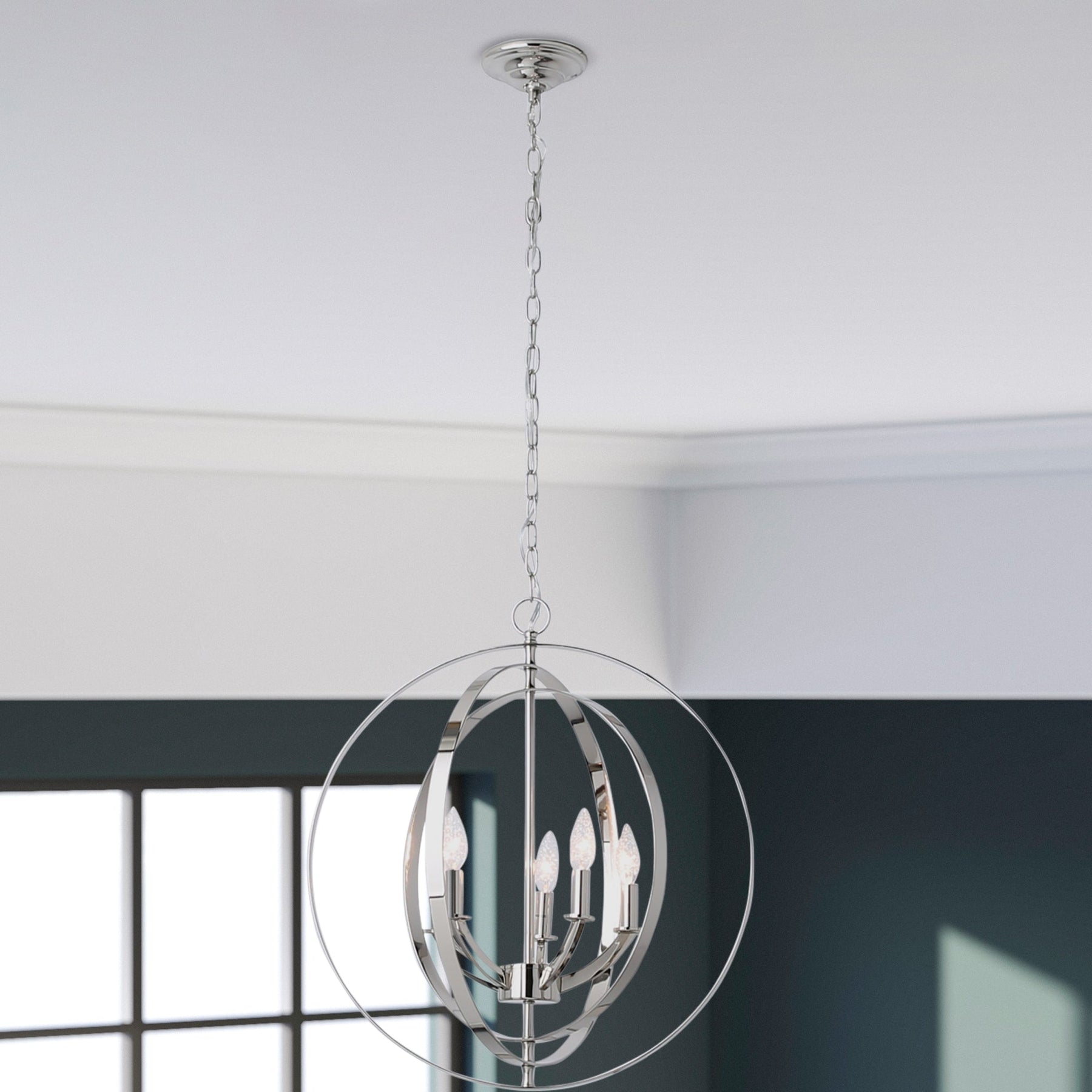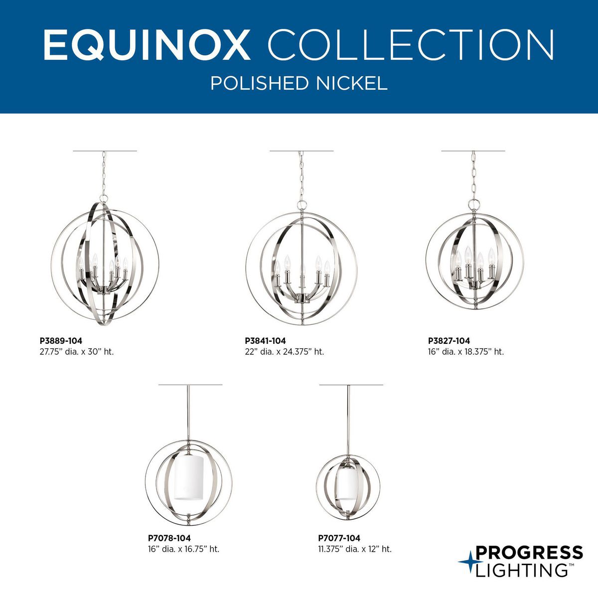 The Equinox 5-Light Polished Nickel Chandelier by Progress Lighting brings a touch of celestial elegance to any room with its pivoting concentric rings and sleek, polished finish. Ideal for creating a sophisticated ambiance in transitional spaces such as dining rooms, living rooms, or foyers, this chandelier offers both style and practicality with its customizable hanging height.