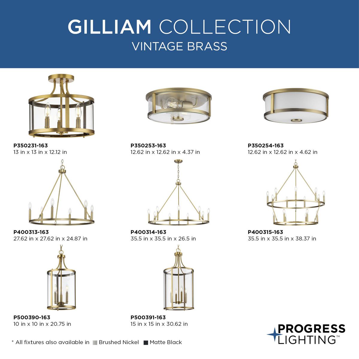 Infuse your home with timeless elegance using the Gilliam 9-Light Farmhouse Chandelier from Progress Lighting. This exquisite fixture combines a captivating vintage brass finish with a classic candle-style design, perfect for enhancing any traditional, modern farmhouse, or contemporary space. Built for reliability and beauty, it offers a soft ambient glow ideal for dining rooms and living areas.