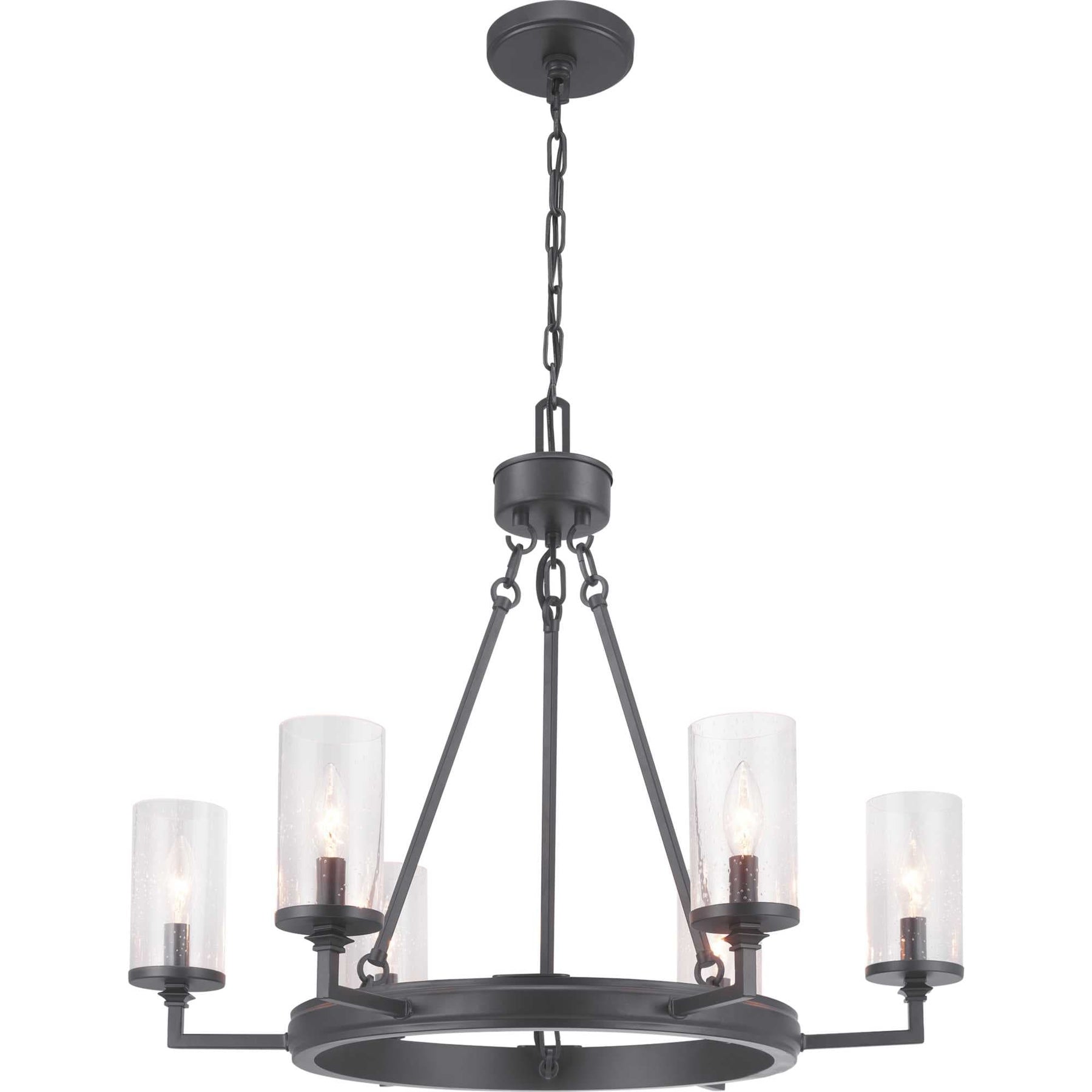 Illuminate your space with the Gresham 6-Light Black Transitional Chandelier from Progress Lighting. Featuring a sleek graphite finish and rustic clear seeded glass shades, this striking piece adds elegance and style to any room. Perfect for a variety of décor settings, this chandelier combines traditional charm with modern appeal, making it an ideal choice for dining rooms, foyers, or great rooms.