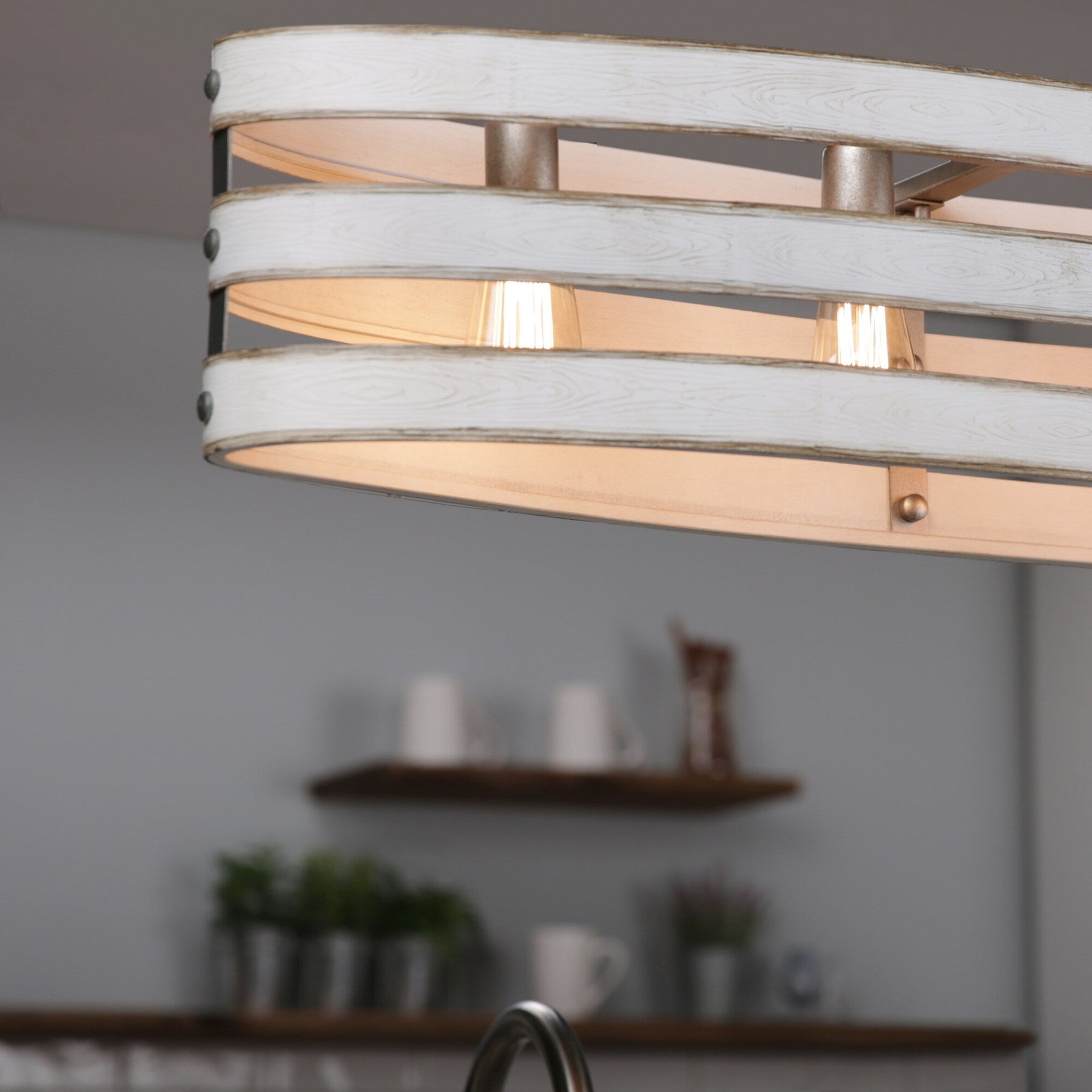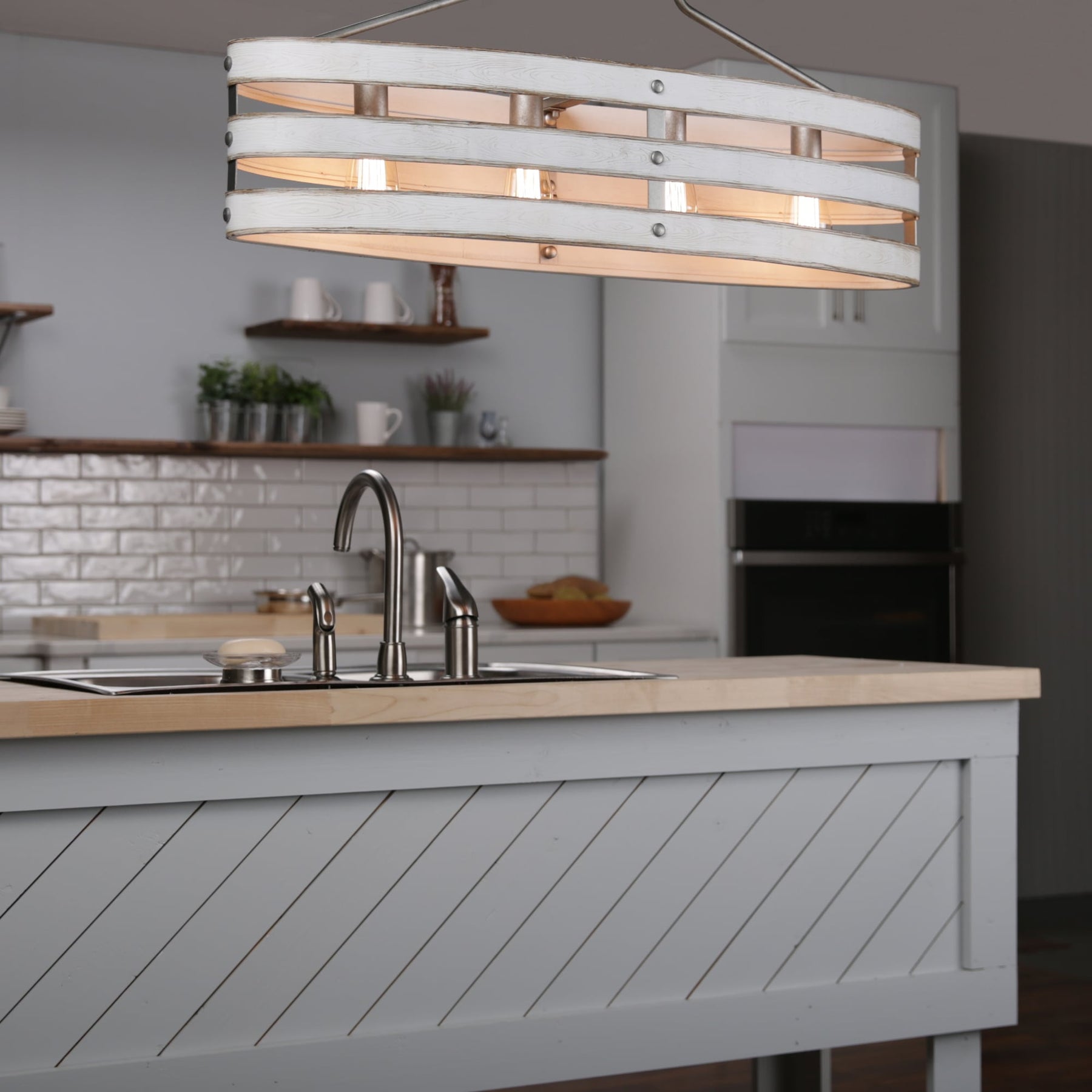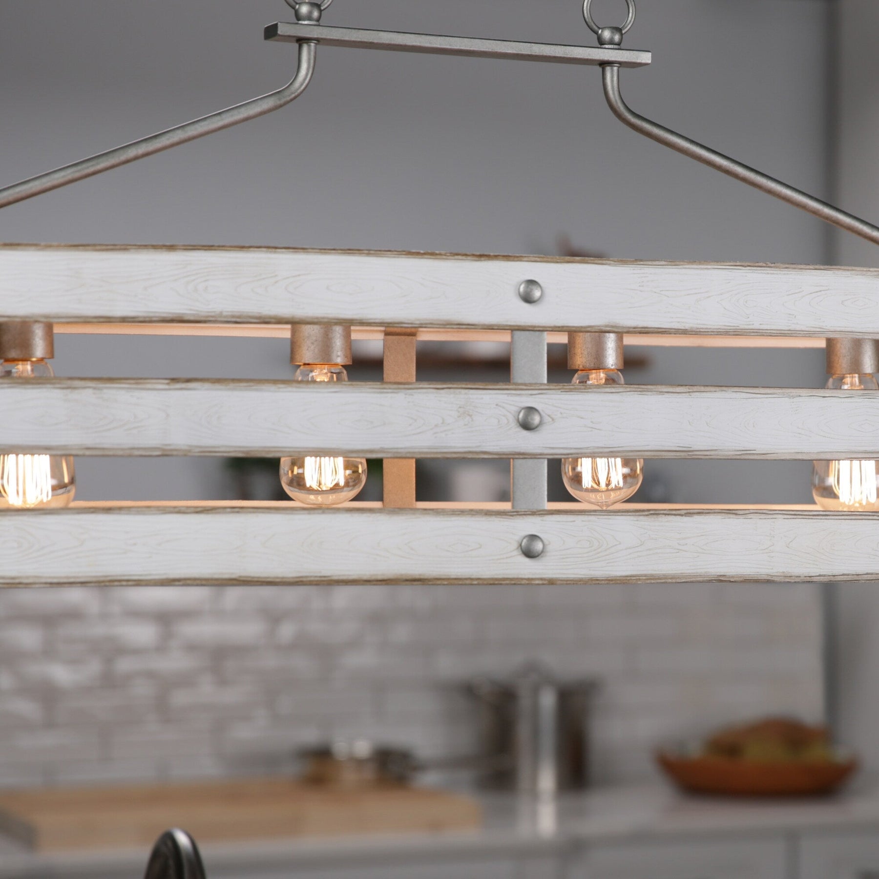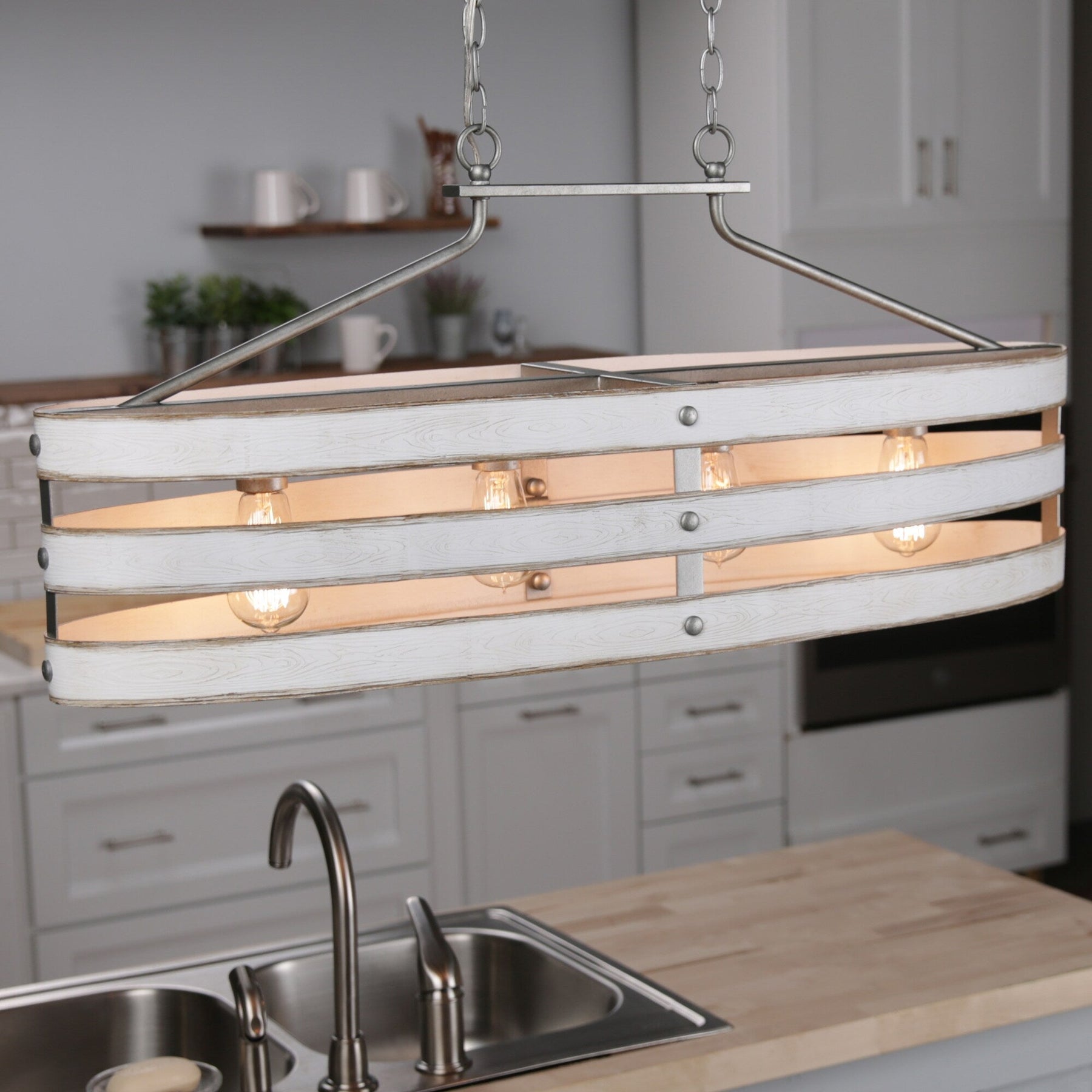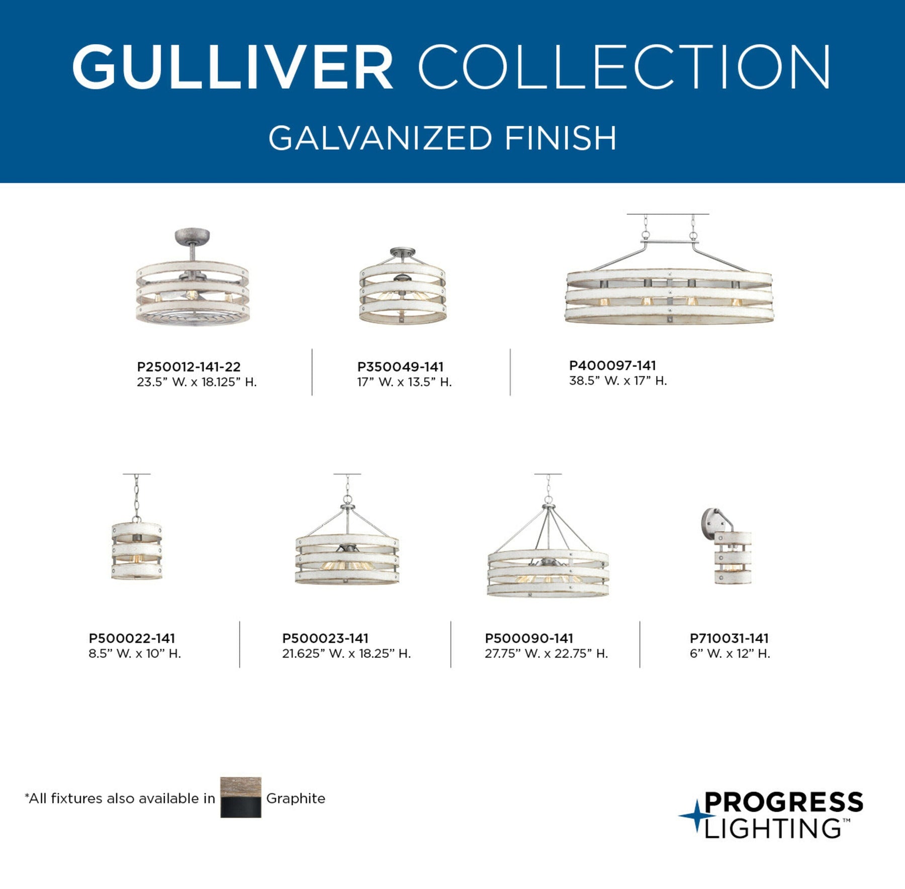 Illuminate your space with the Gulliver 4-Light Coastal Chandelier, expertly crafted by Progress Lighting. It features a charming whitewashed faux wood finish with galvanized metal accents, offering a coastal, farmhouse allure. Perfect over dining tables or kitchen islands, this chandelier adds vintage elegance to any room.