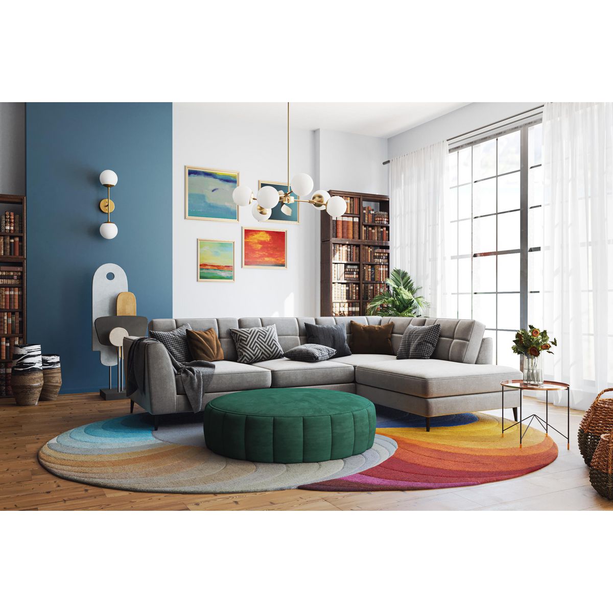 • Versatile Installation: Can be mounted as a chandelier or semi-flush ceiling light.
