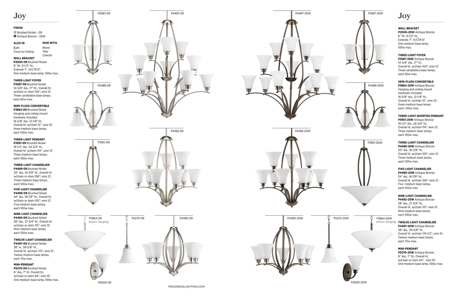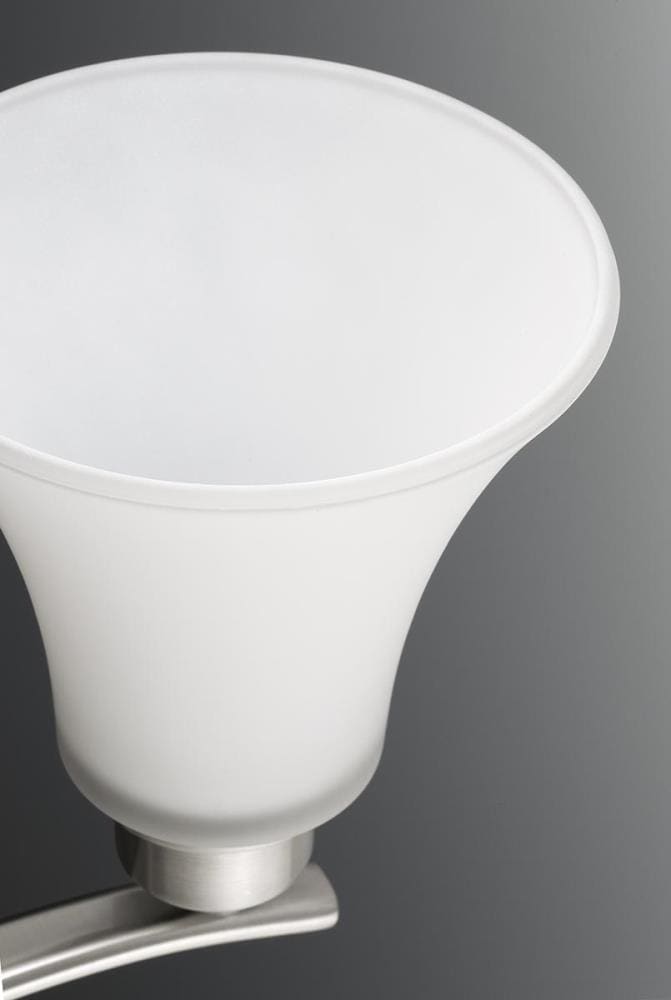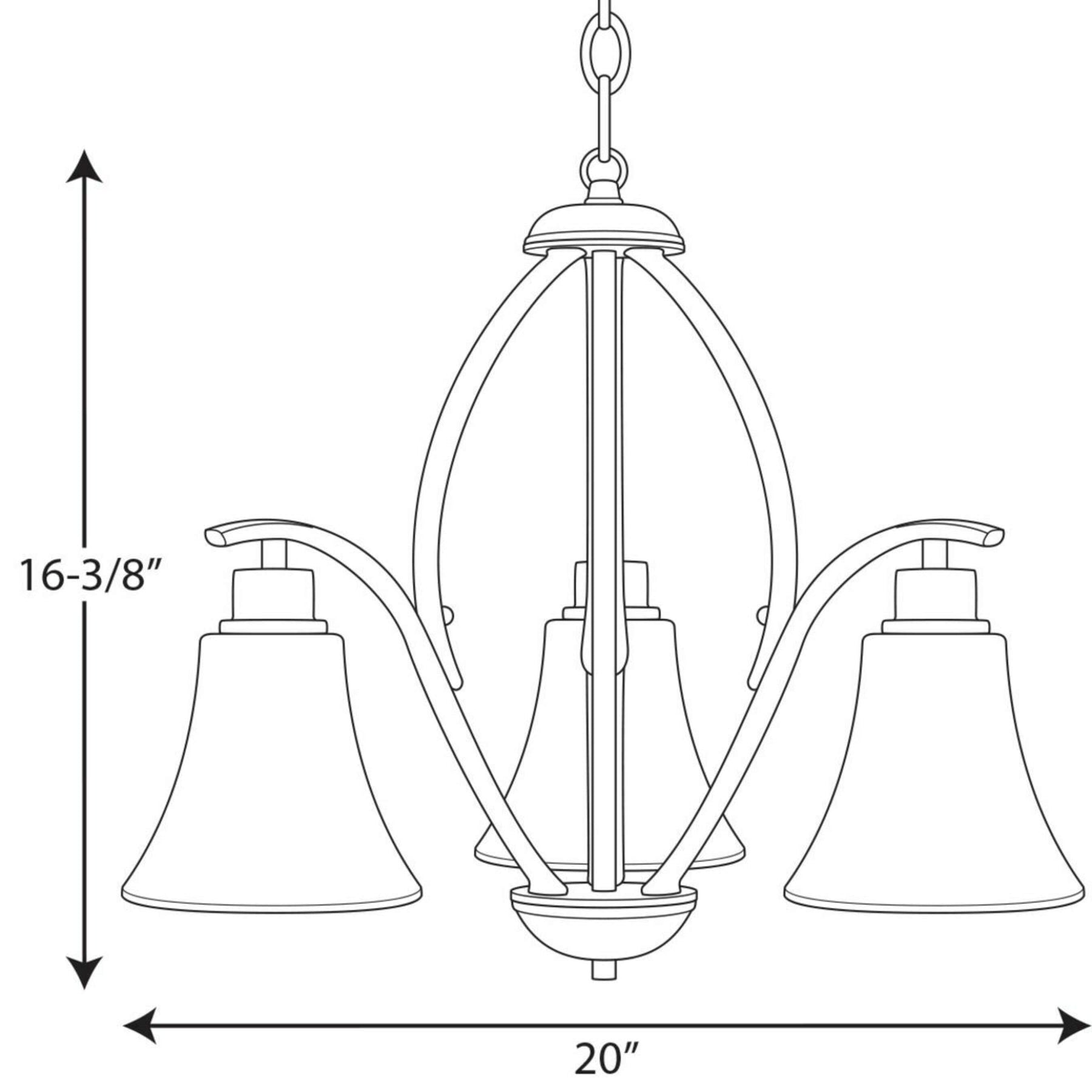 Illuminate your space with the Joy 3-Light Brushed Nickel Chandelier by Progress Lighting, a harmonious blend of traditional elegance and modern style. Featuring arched metal arms and etched glass shades, this fixture enhances any room with its soft, ambient glow. Designed for versatility, it includes adjustable chain lengths for customized installation.