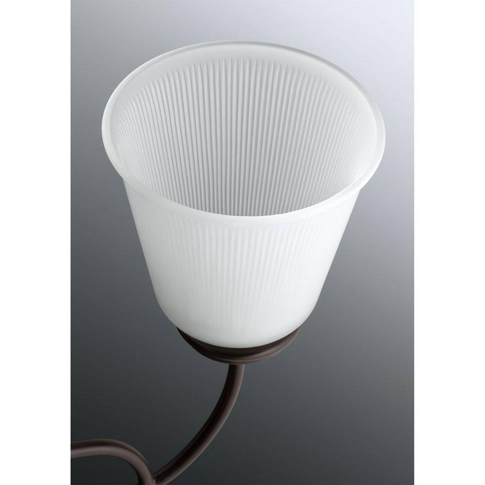 • Material: Metal frame with frosted ribbed glass shades for a refined appearance.