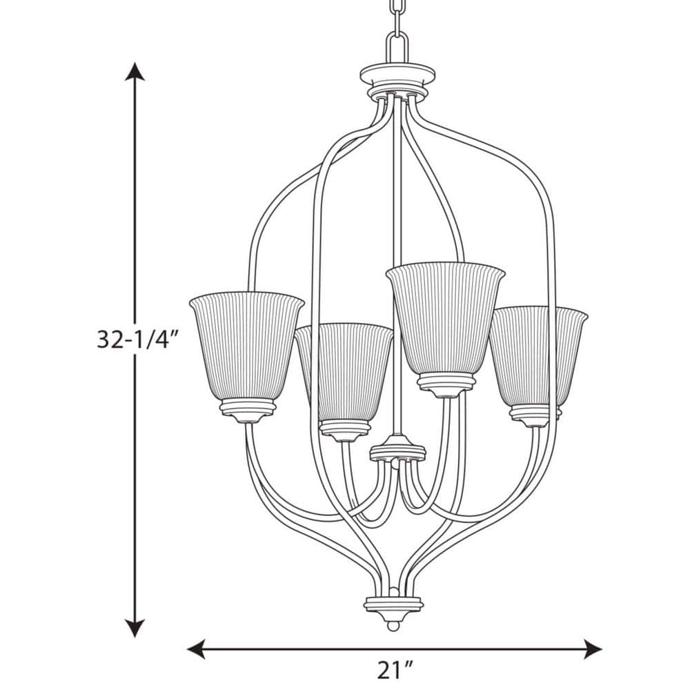 Illuminate your space with the classic charm of the Keats Collection 4-Light Antique Bronze Foyer Pendant by Progress Lighting. Its frosted ribbed glass shades and traditional styling create an enchanting ambiance, perfect for elevating entryways or dining areas. Adjustable hanging options and a sophisticated antique bronze finish enhance its versatility and timeless appeal.