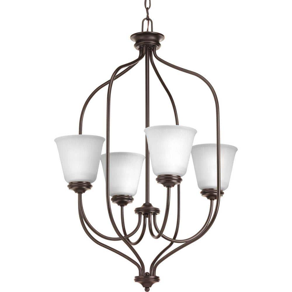 Progress Lighting Keats Collection 4-Light Antique Bronze Foyer Pendant with Frosted Ribbed Glass