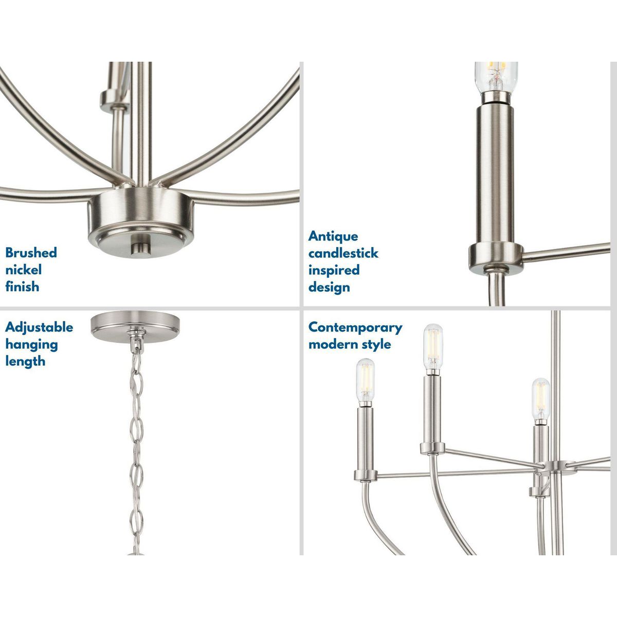 Progress Lighting Leyden 5-Light Brushed Nickel Transitional Chandelier