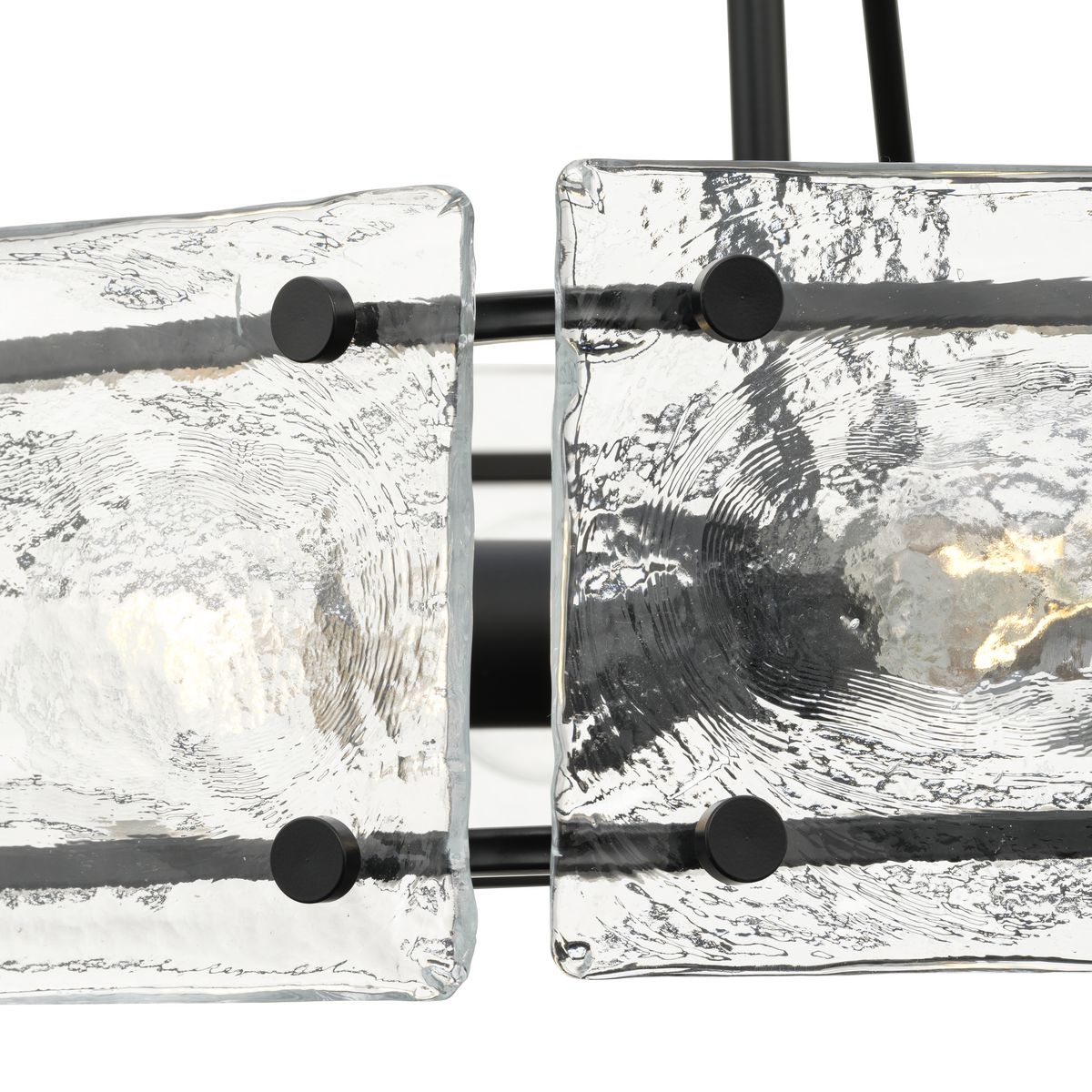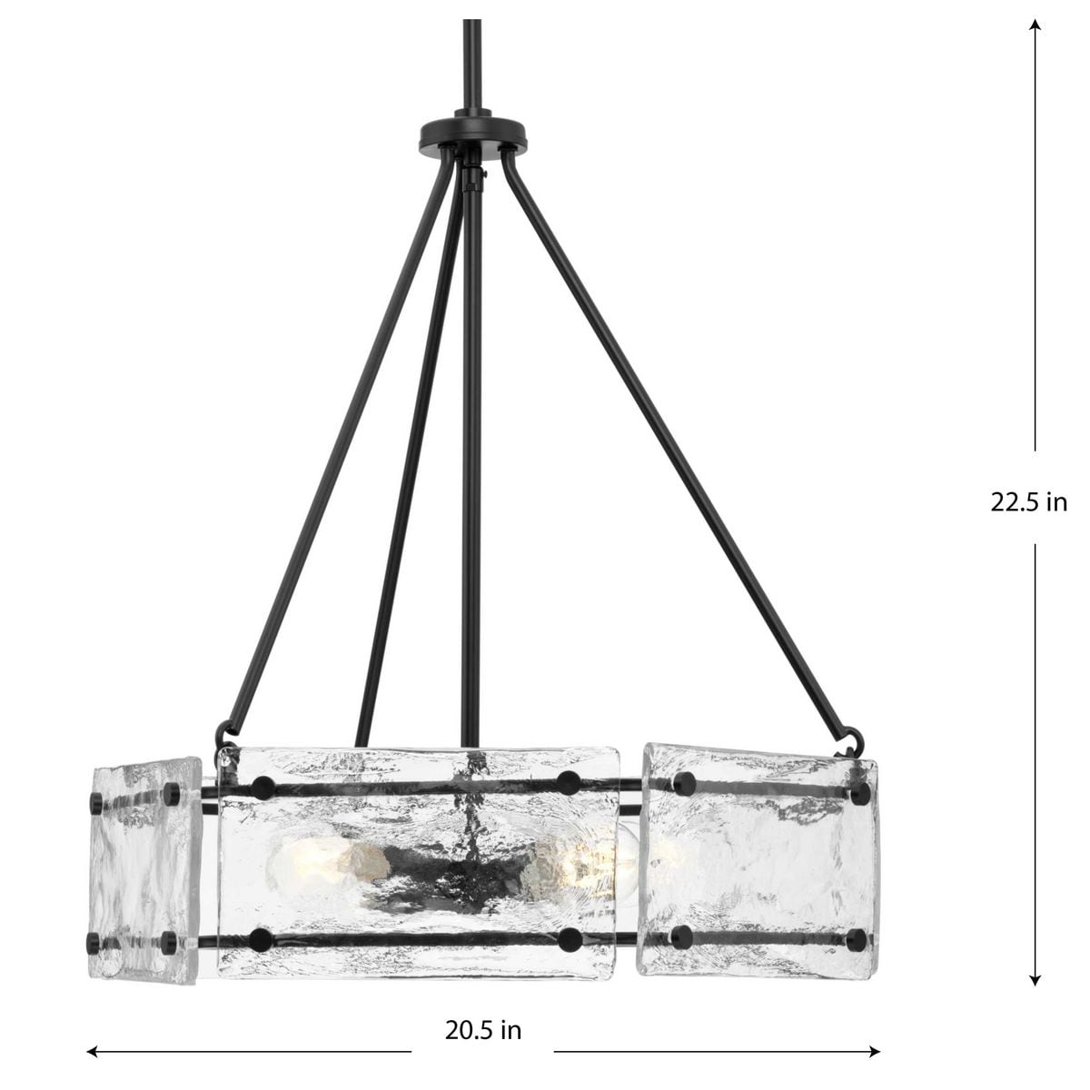 Elevate your space with the Rivera 4-Light Matte Black Craftsman Chandelier by Progress Lighting. This fixture combines modern farmhouse elegance with luxe, urban industrial style through its linear elements and clear, textured glass. Perfect for adding a touch of timeless artistry to dining rooms, great rooms, or bedrooms.