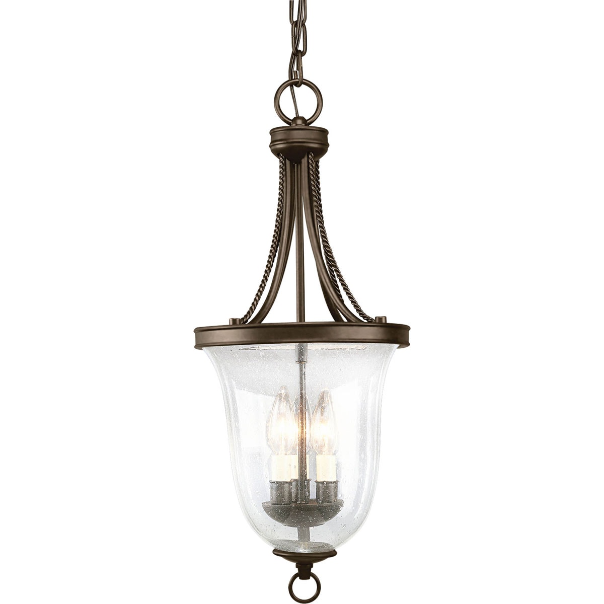 Illuminate your space with the Progress Lighting Seeded 3-Light Antique Bronze Chandelier. Its elegant transitional design, featuring a rustic clear seeded glass bowl and a handsome antique bronze finish, is perfect for traditional or modern homes. This fixture adds timeless beauty and warmth to any room.