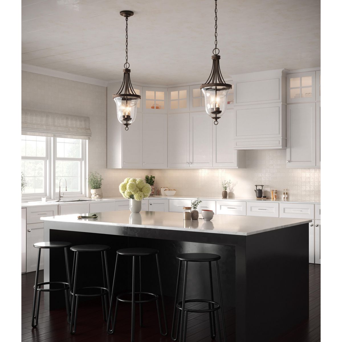 - Design: Handsome antique bronze finish with a rustic clear seeded glass bowl.