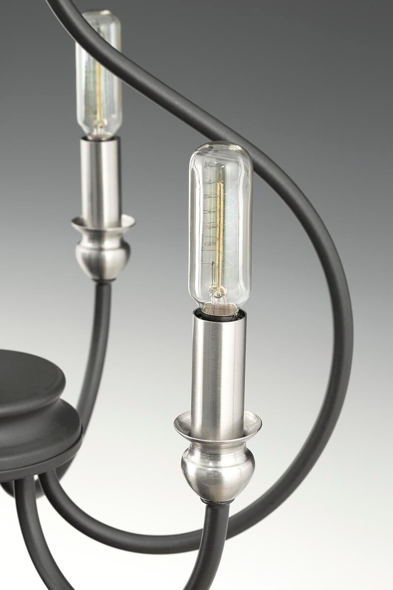 Illuminate your space with the Whisp 6-Light Farmhouse Chandelier, an elegant blend of rustic charm and modern design. This chandelier transforms indoor settings with its expansive, gracefully curved frame, finished in sophisticated graphite and featuring brushed nickel accents. Ideal for diverse spaces like dining rooms, kitchens, and foyers, it also allows for easy customization with a 72-inch chain for varied ceiling heights.