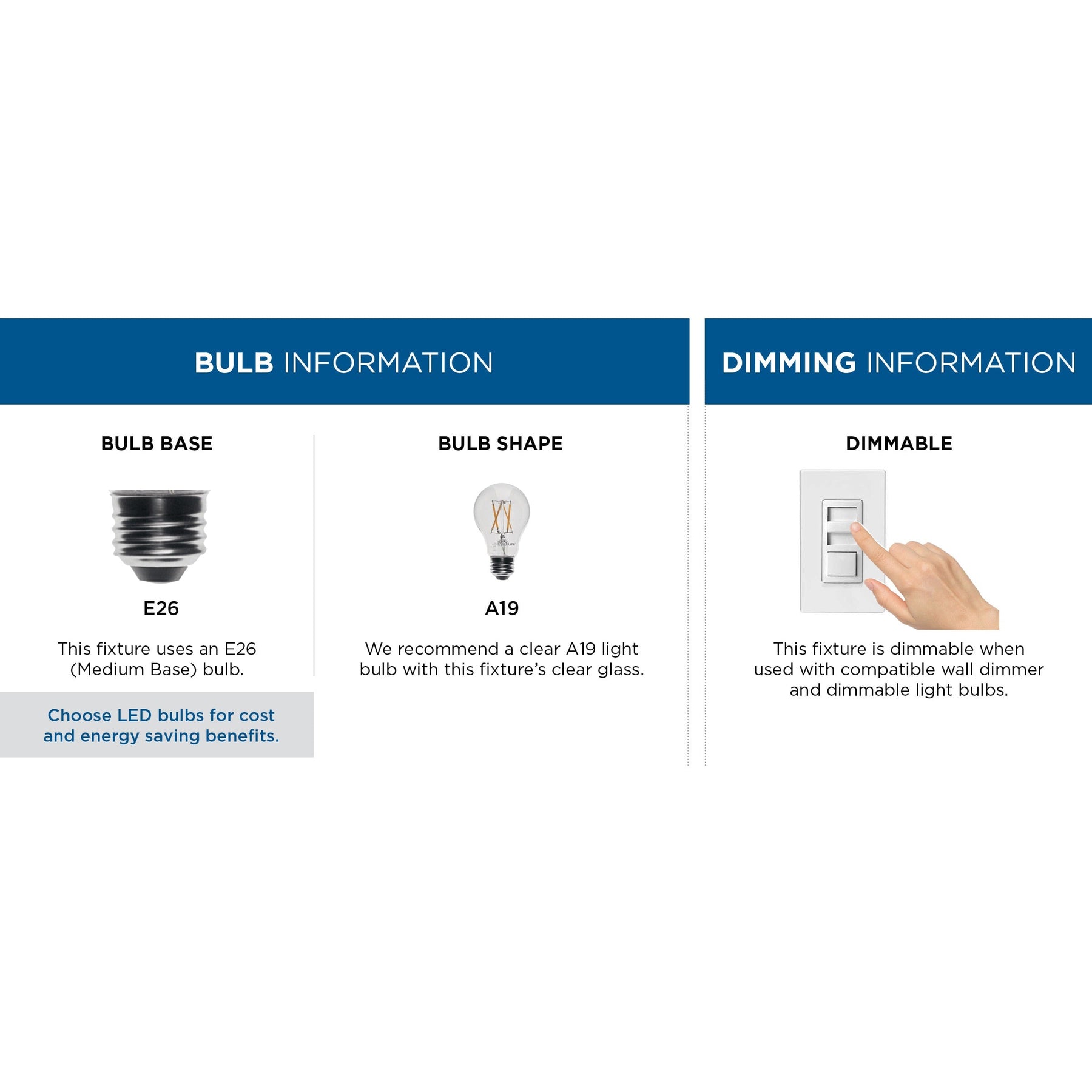 A: The fixture supports medium base (E-26) bulbs up to 60W, including LED, CFL, and incandescent options.