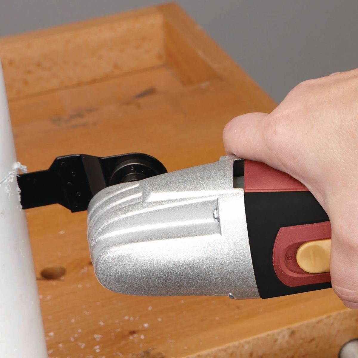 Cut through cable and pipes, sand down concrete and plaster or saw through wood up to 2-1/4" thick with ease at 10000-20000 OPM - using this amazing multifunction oscillating power tool. This multifunction tool accepts a wide variety of accessories for every job from cutting to sanding. Built for durability this oscillating multi-tool has a die cast aluminum gear housing and sealed bearings.