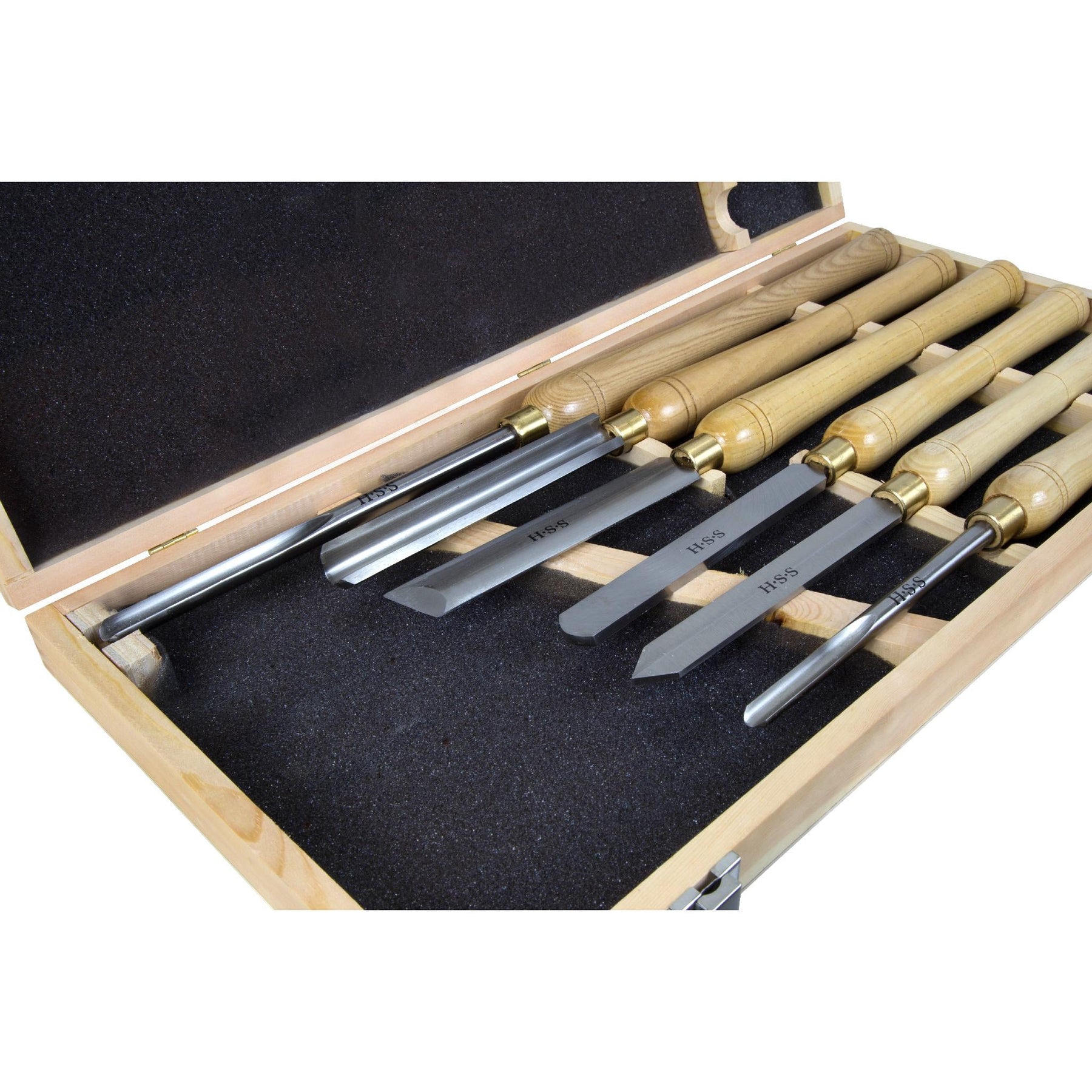 These chisels bring a refined, workshop elegance to your creative space—the ash handles glow with natural grain while the sleek HSS blades promise performance. I love the elongated silhouettes and brass details; they feel tailored and substantial in the hand. Style the wooden case on open shelves near your lathe to showcase both function and craft. For the maker’s studio that values beauty and precision, this set is a quiet essential.