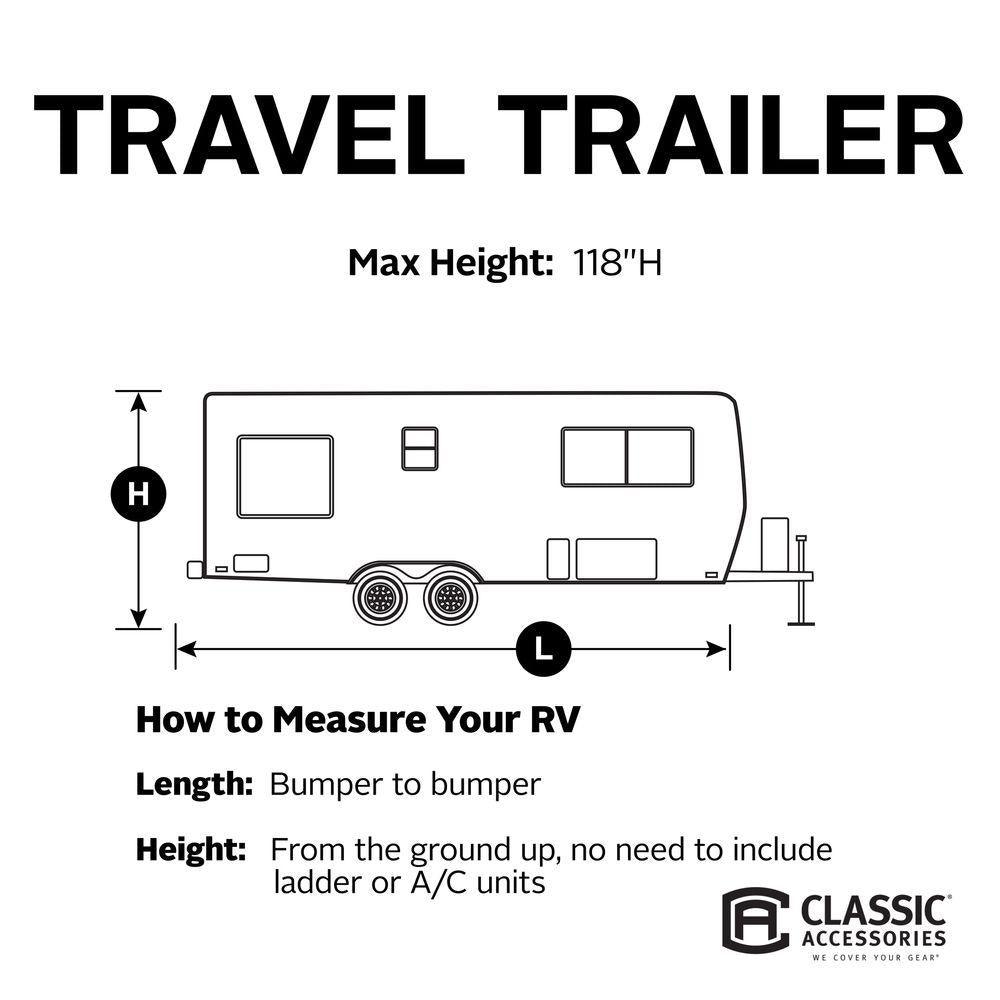 • Travel trailer cover: fits travel trailers 22 ft. - 24 ft. L, 118 in. high from ground to roof