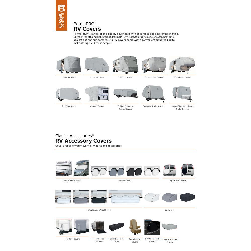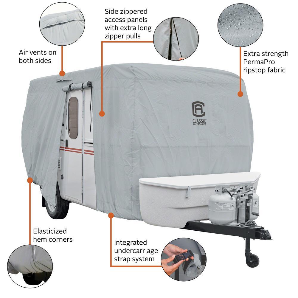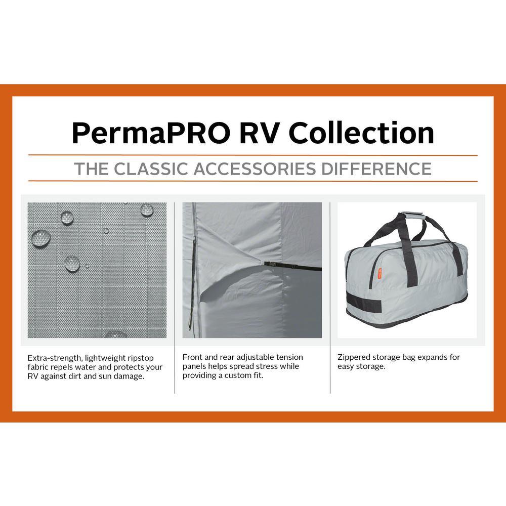 PermaPRO RV covers provide maximum protection to keep your RV in top shape all year long. Air vents, tension panels, and extra-long zipper pulls make this cover stand out from all the rest. When you are ready to hit the road, this manageable cover fits effortlessly into its storage bag. When you buy from Classic Accessories, you’ll receive peace of mind along with your product, thanks to the easiest warranty in the industry. If you’re disappointed with your purchase within the warranty period, look for us online and take advantage of our Hassle-Free warranty program supported by our US-based team.