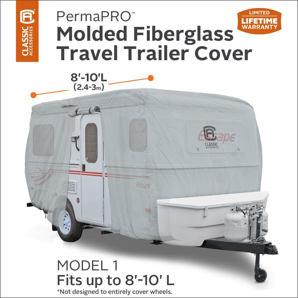 Classic Accessories Over Drive PermaPRO Molded Fiberglass Travel Trailer Cover, Fits up to 8 ft.-10 ft. long RVs