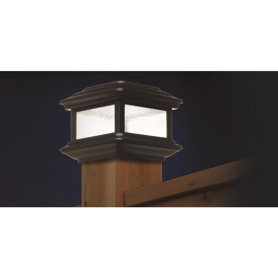 High performance solar lights stays lit for up to 12 hours Lights up automatically every night auto - off switch 2 High output LED’s for brilliant white light 2 long life AA Ni-MH rechargeable batteries included Durable powder coated Black aluminum Will fit over a nominal 4”x4” wood post (actual dimension of opening: 3-5/8”x 3-5/8”) Quick and easy Do It Yourself installation 8 Lumens or 4500- 5500 Kelvins
