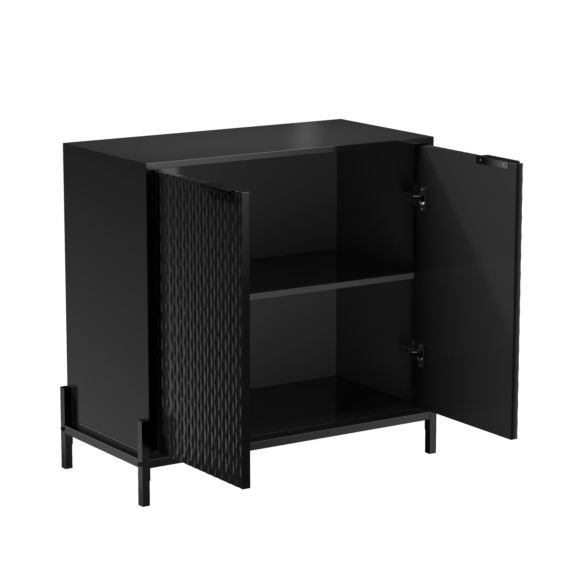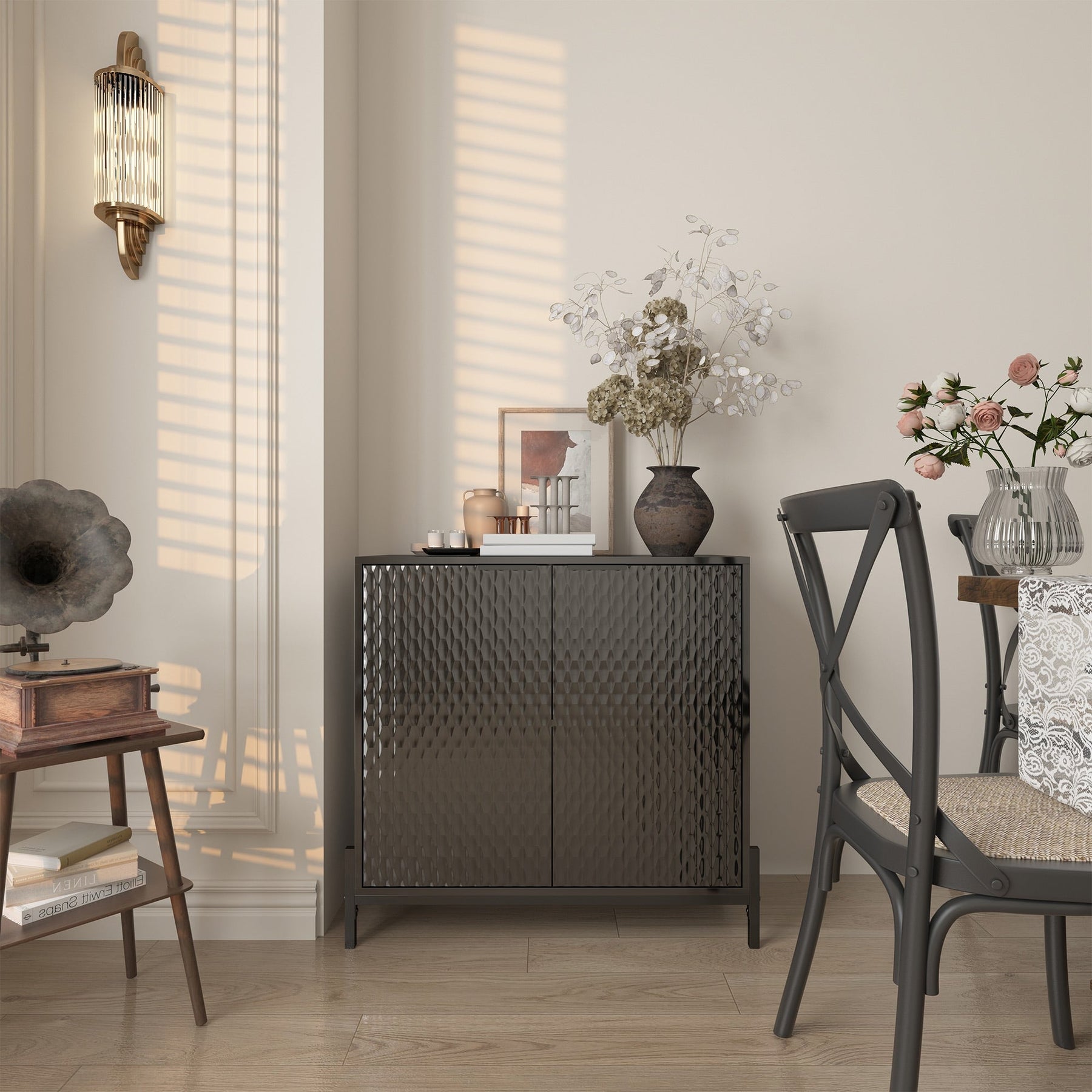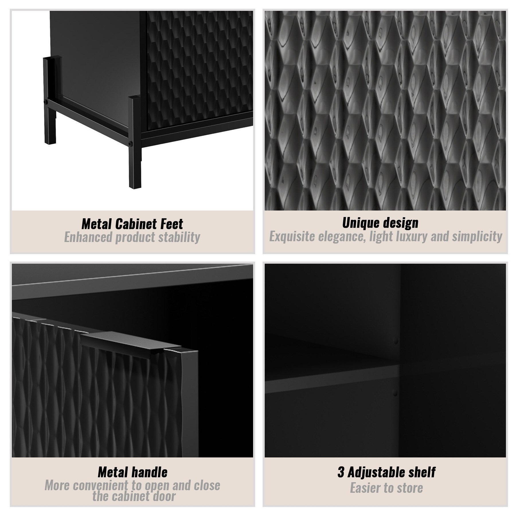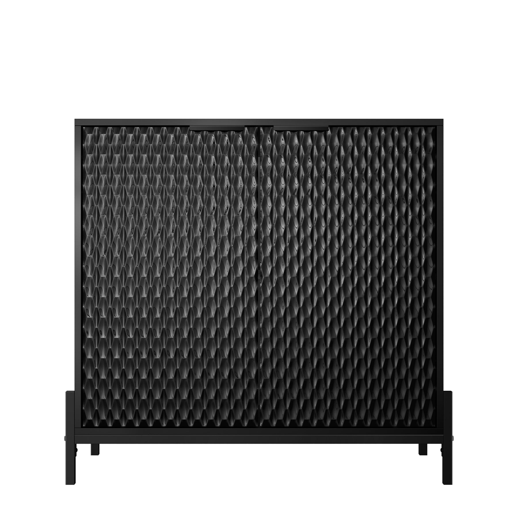 Enhance your living space with the Clihome Black Utility Storage Cabinet, designed for style and versatility. Its sleek black MDF construction and geometric honeycomb accents present a modern touch, while adjustable shelves provide flexible storage options. Ideal for any indoor room, this cabinet combines functionality with stunning aesthetics.