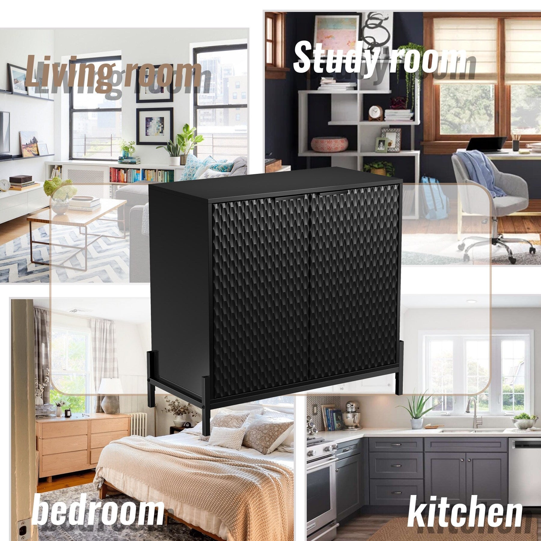 This stunning utility cabinet transforms any room with its sleek black silhouette and geometric honeycomb detailing. The adjustable shelves allow for a personalized touch, while the iron accents enhance both stability and style. Picture this piece in a contemporary office setting, bookended by statement lamps and lush green plants. The Clihome Black Utility Storage Cabinet is more than just furniture; it's a testament to refined, functional elegance.
